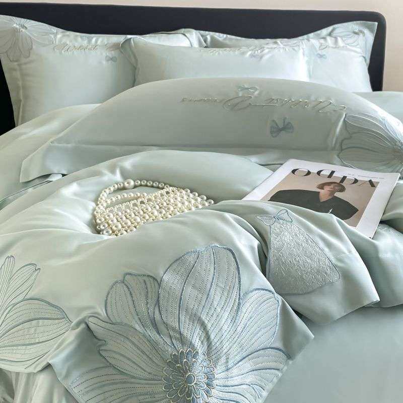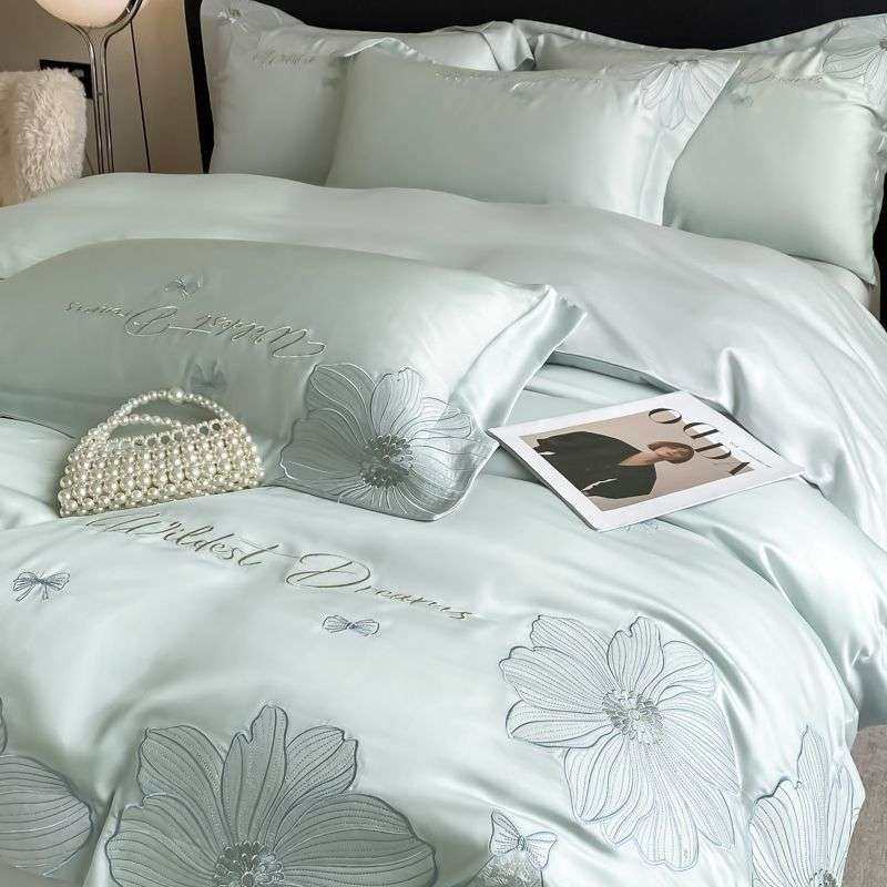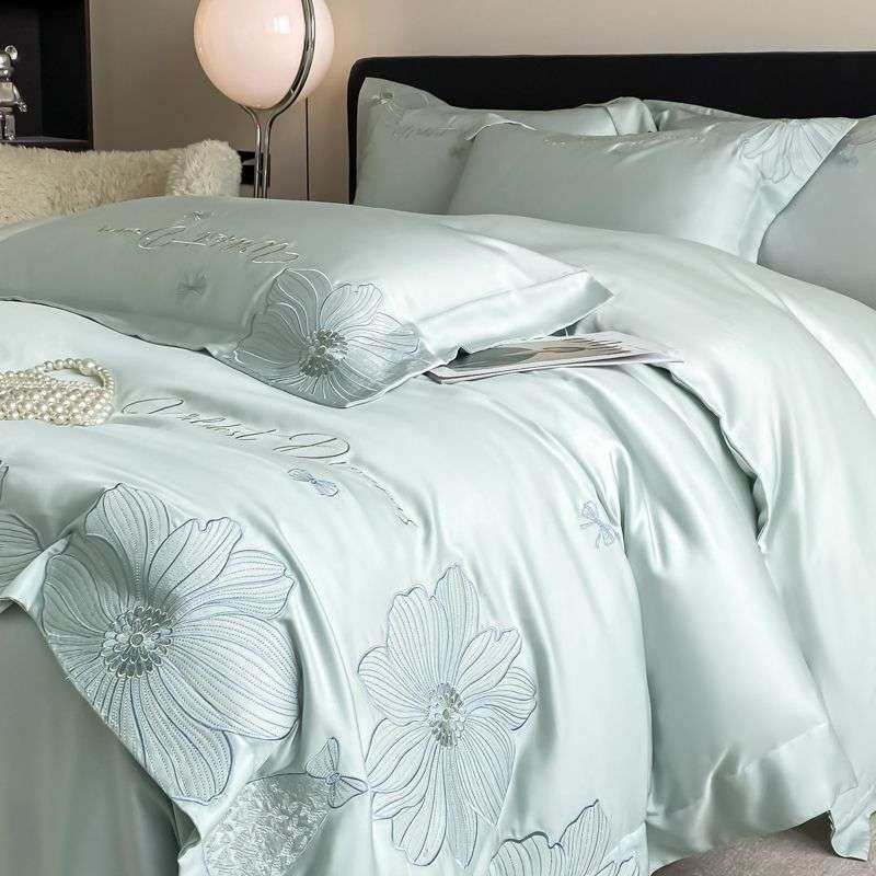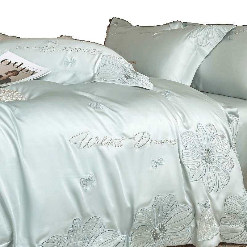 轻奢夏季冰丝四件套水洗天丝床单凉感丝滑裸睡床笠款刺绣被套床品