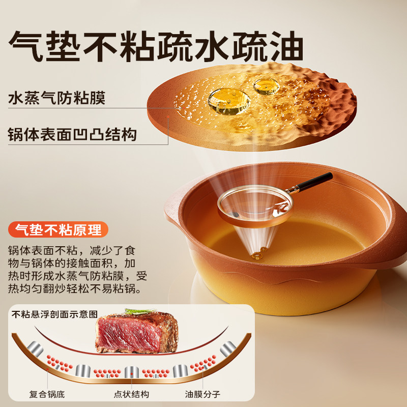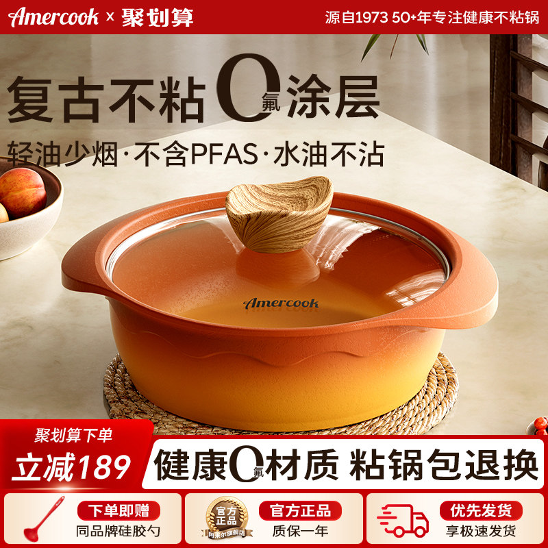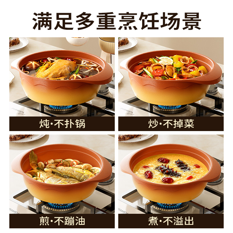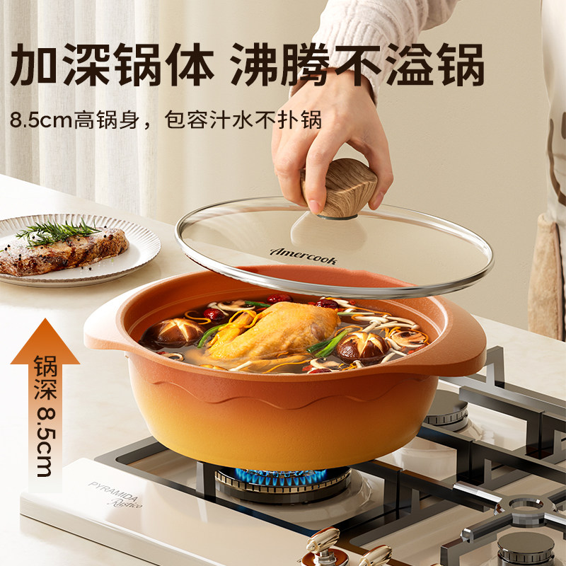 Amercook阿尔菲塔阿米尔复古陶土加深不粘煮锅蒸锅煲汤炖锅海鲜锅
