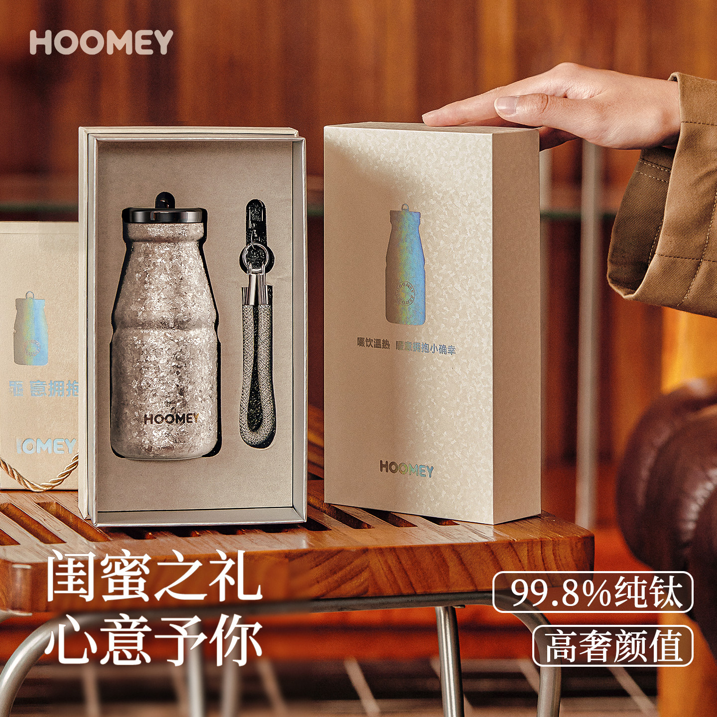 hoomey马年新年生日礼物订婚结婚伴手礼新婚纯钛保温杯送朋友女生