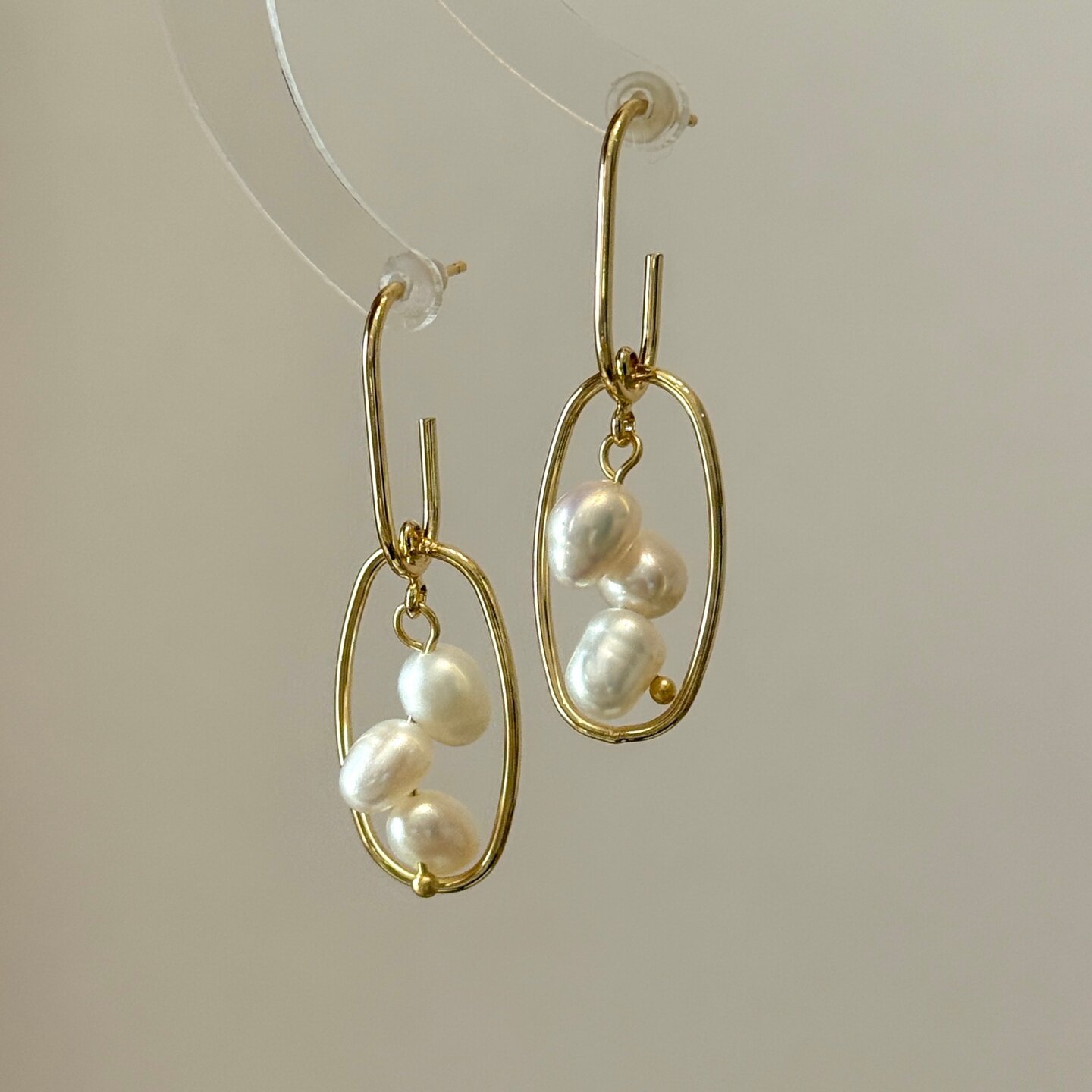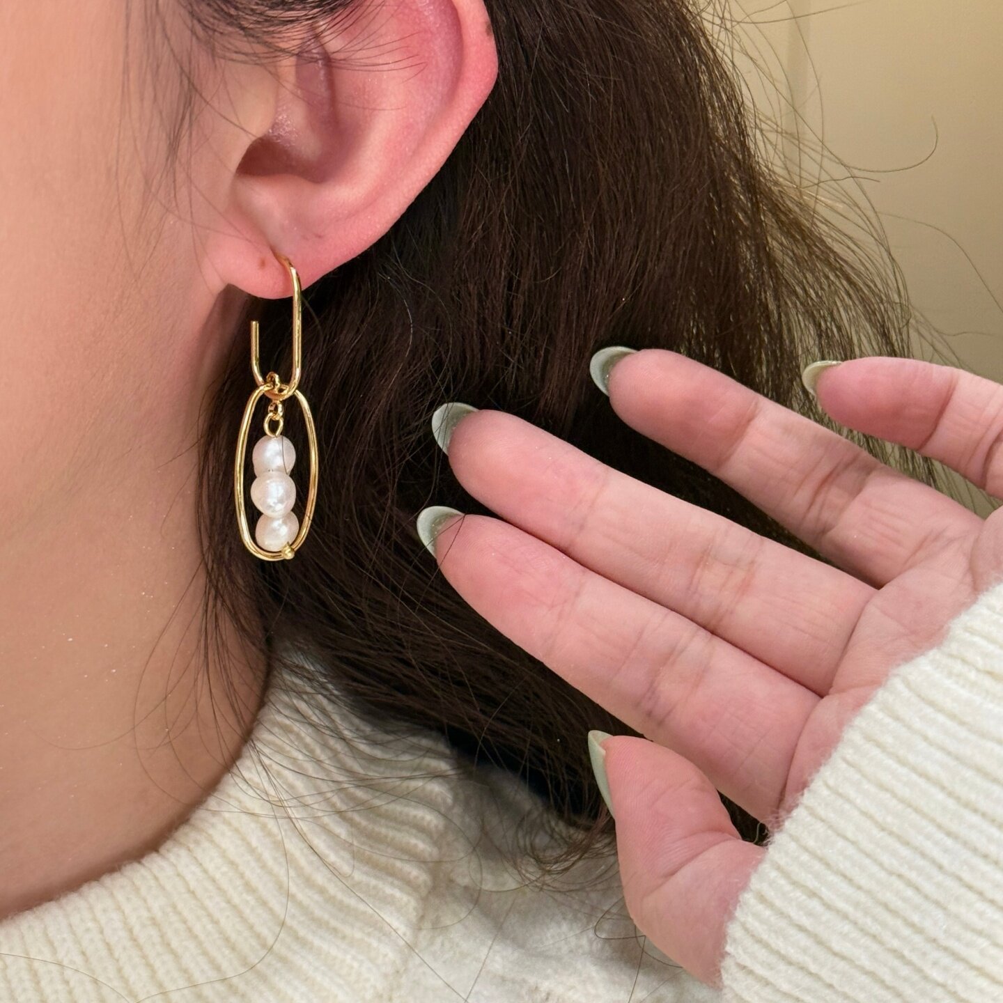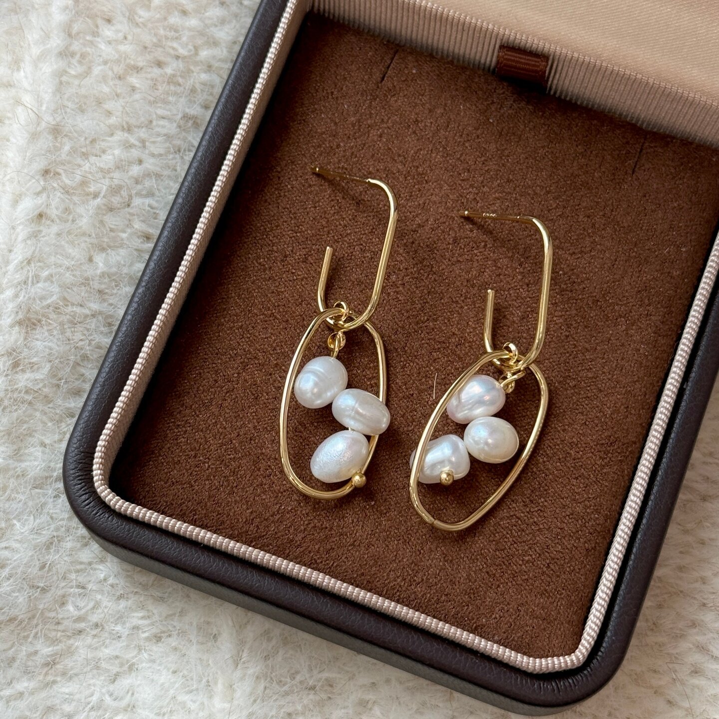 《云霞落珠》原创设计小众复古轻奢天然珍珠圆圈金色耳环耳钉耳饰