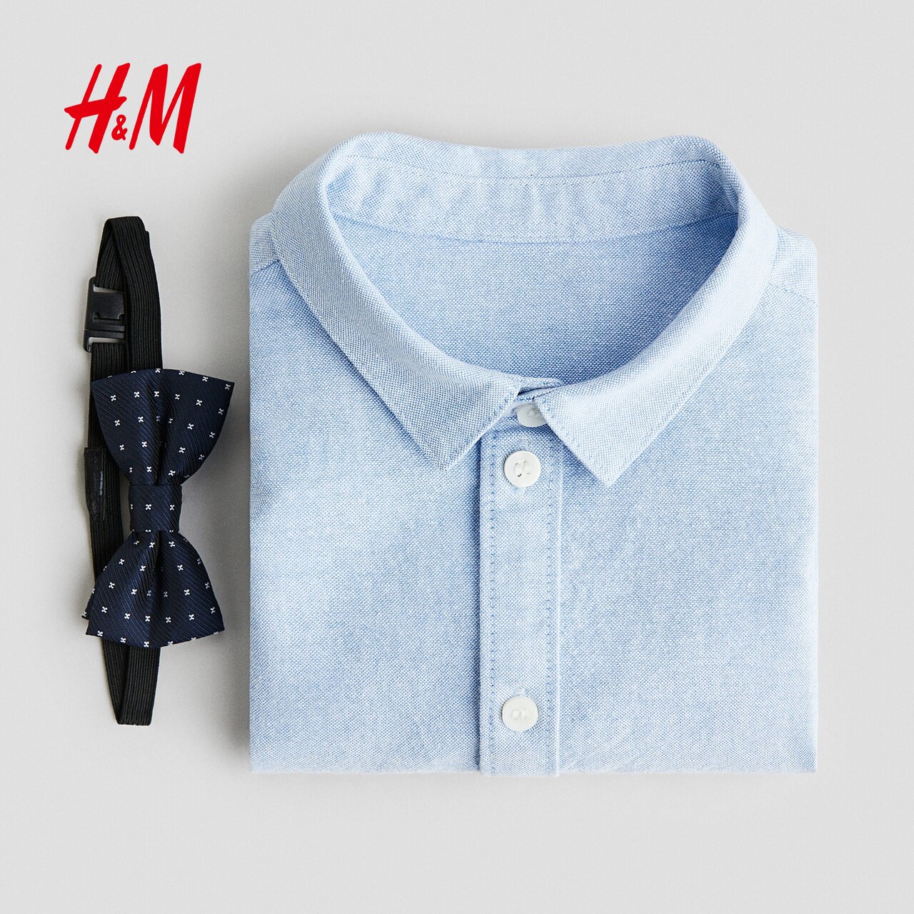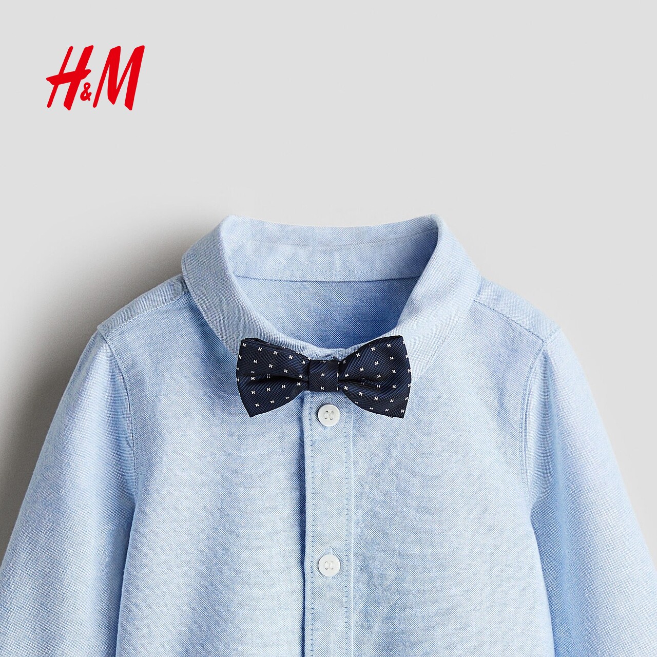 HM童装男婴套装2件式2025春季新款宽松长袖内搭衬衫和领结1300003