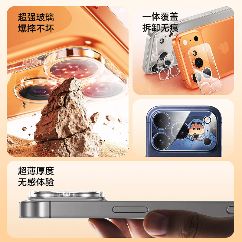 倍思适用iPhone17ProMax/16Pro镜头膜苹果15手机镜头保护膜14后摄像头贴4新款康宁13相机全包12高清分体ip壳
