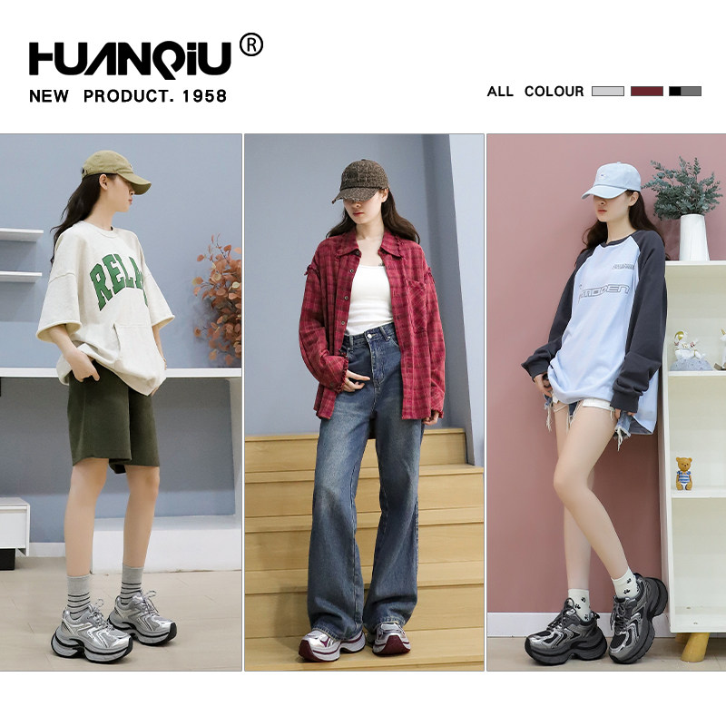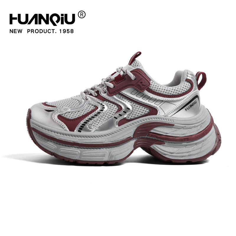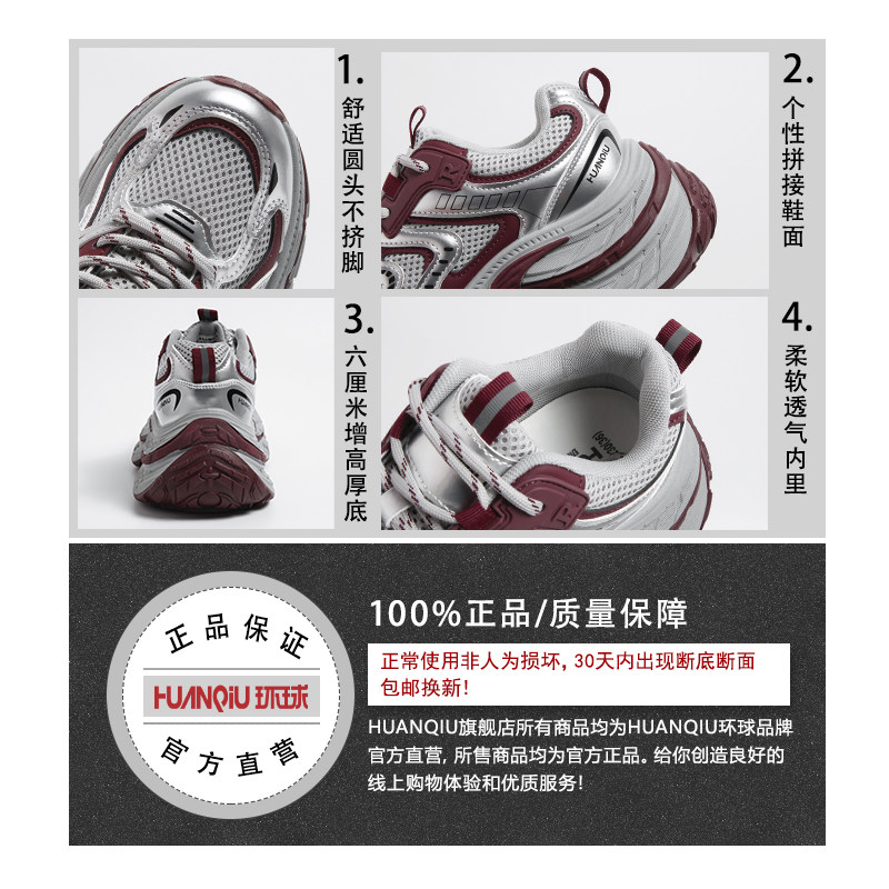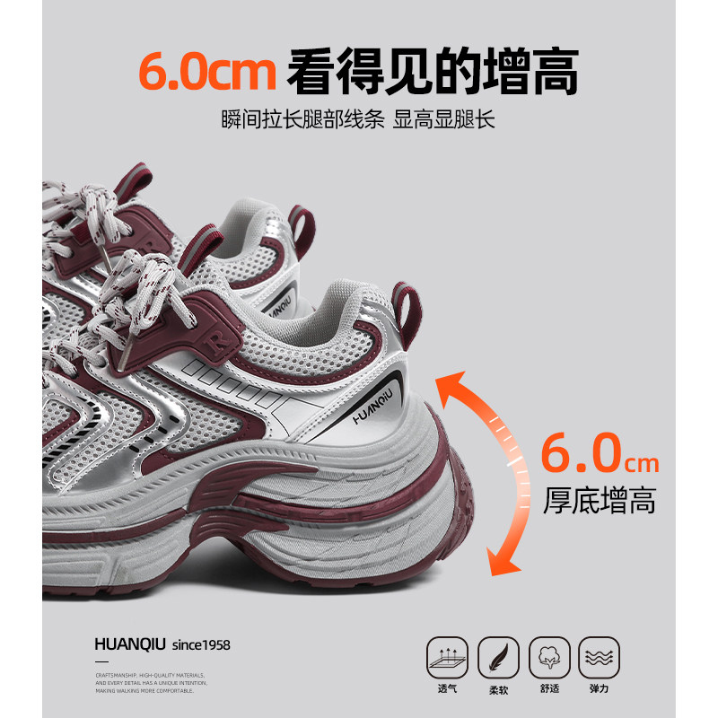 环球酒红色老爹鞋女2026春季新款松糕厚底运动鞋小个子增高休闲鞋