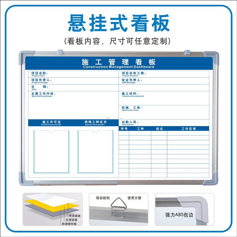 施工安全管理看板 企业工厂车间生产管理进度看板设备产品生产计