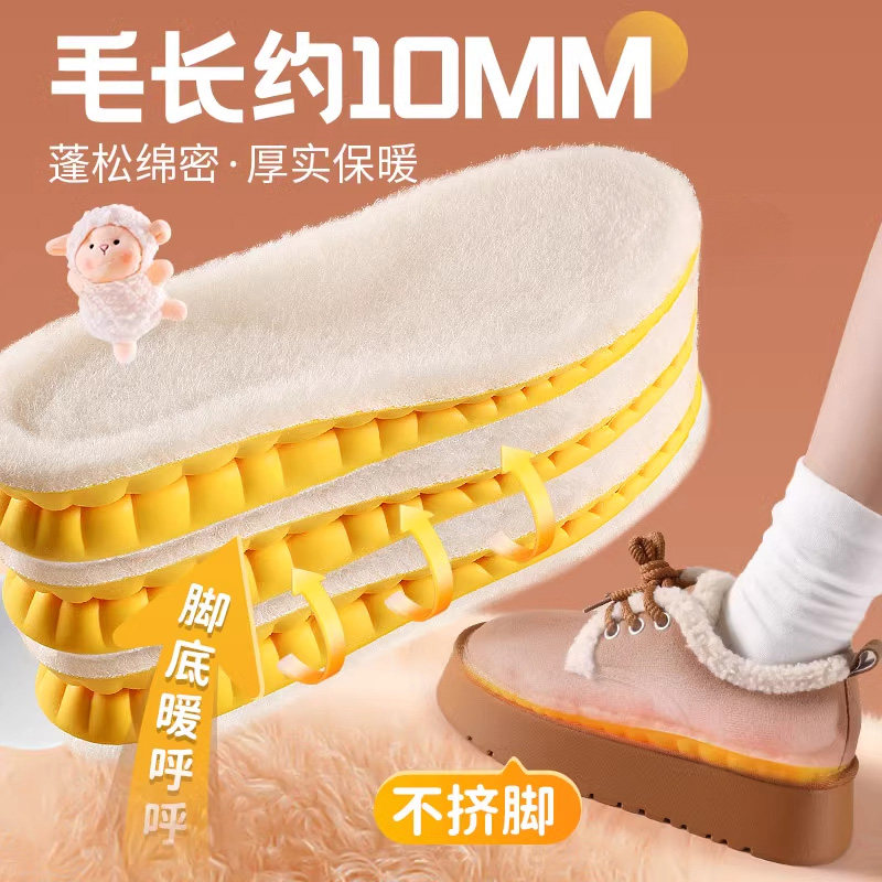 秋冬保暖加绒鞋垫羊毛男女加厚踩屎感吸汗防臭毛绒运动减震不累脚