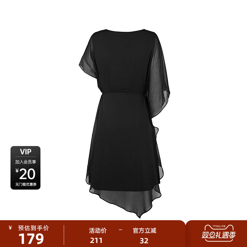 sdeer圣迪奥女装圆领收腰拼接不规则雪纺连衣裙S223Z12C7