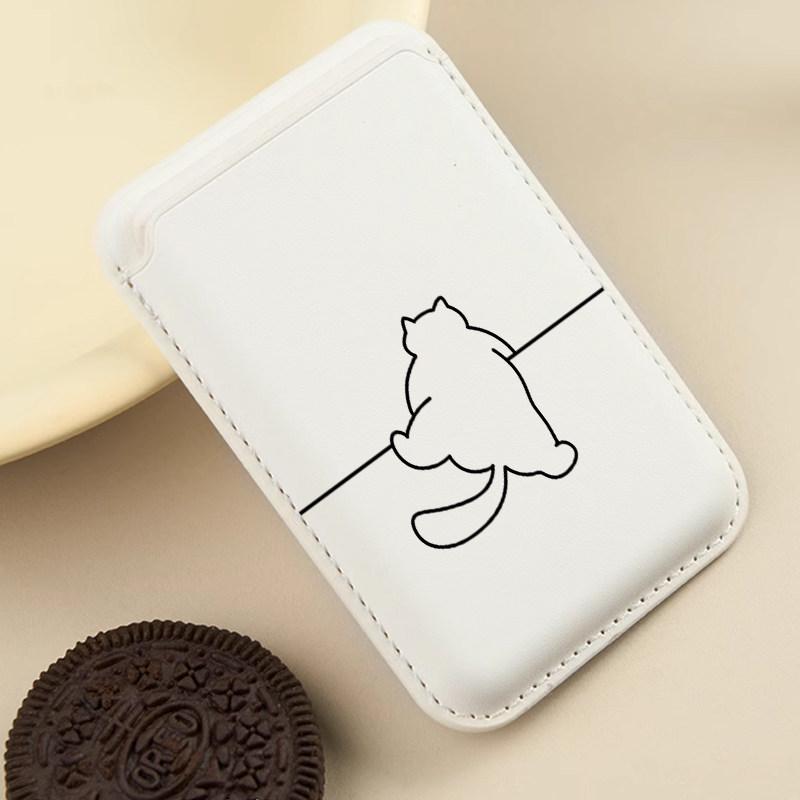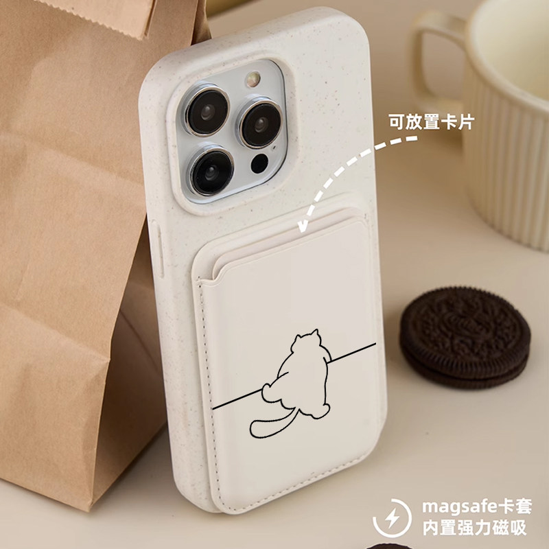 新款苹果magSafe磁吸卡包适用于iphone15promax皮革mini卡套式爬墙小猫13pro真皮质卡夹钱包配件插卡槽门禁卡