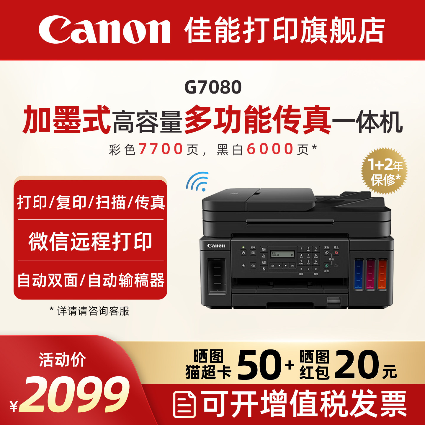 佳能旗舰店G6080/G7080原装加墨彩色A4喷墨打印一体机大印量办公家用打印机照片自动双面手机复印扫描