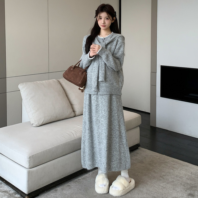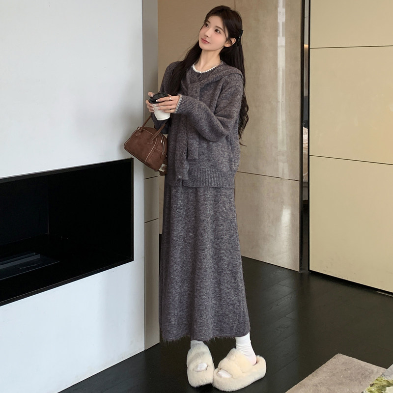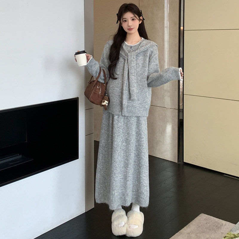 婧麒孕妇装半身裙套装秋冬时尚2025新款针织披肩毛衣裙子宽松长款