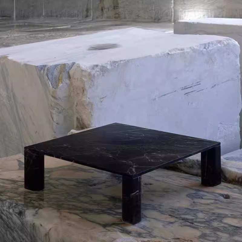 北欧极简天然黑白根大理石茶几 设计师款样板房高档别墅酒店茶桌