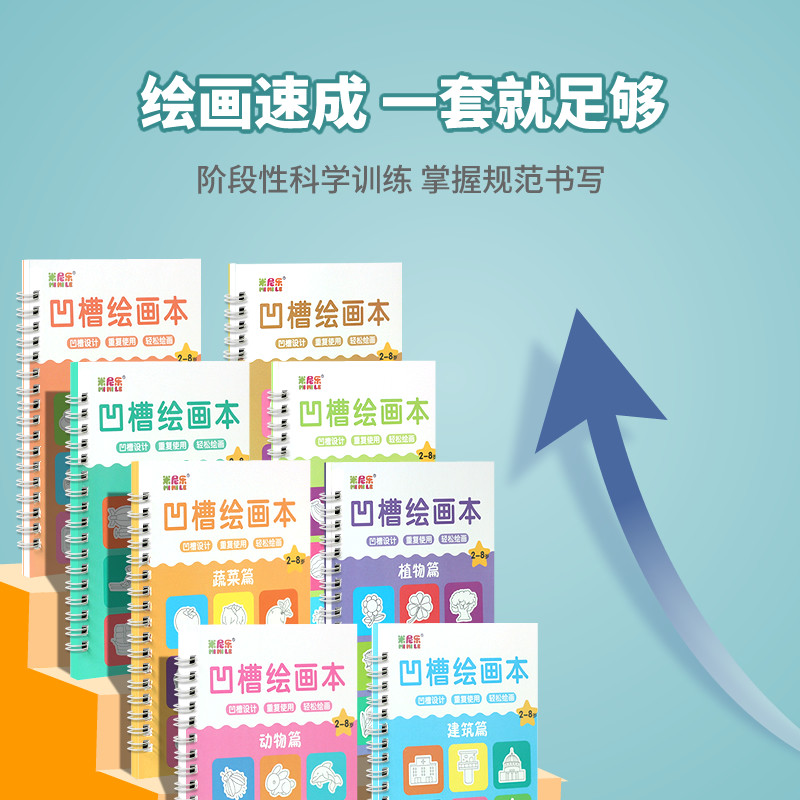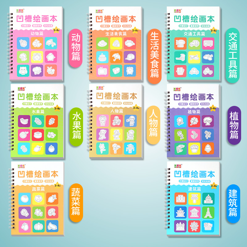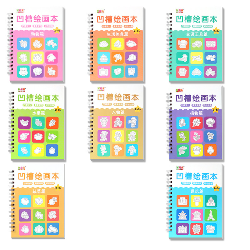 儿童凹槽画画本基础绘画模板凹槽绘画本套装2-8岁学前幼儿园训练