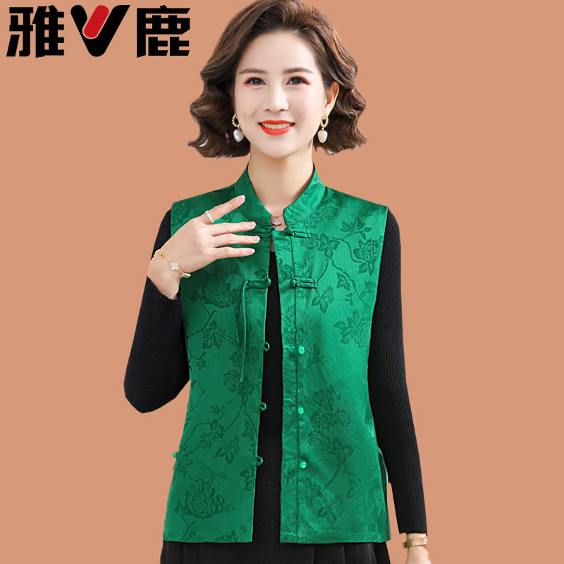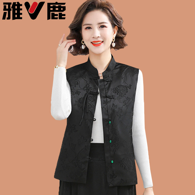 雅鹿2026春夏妈妈马甲新款上衣中老年女装新中式盘扣唐装坎肩背心