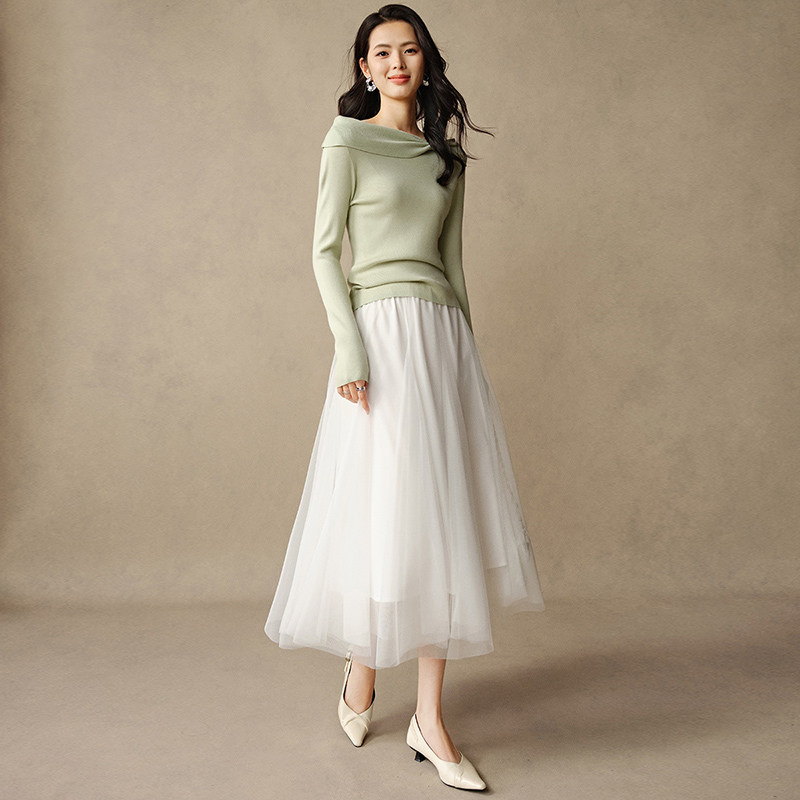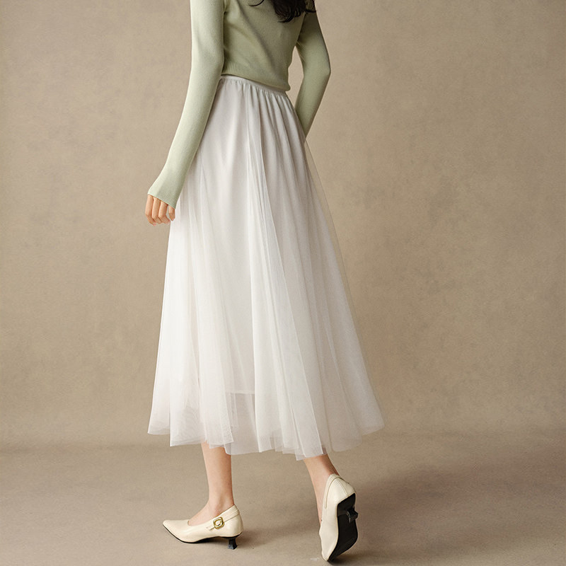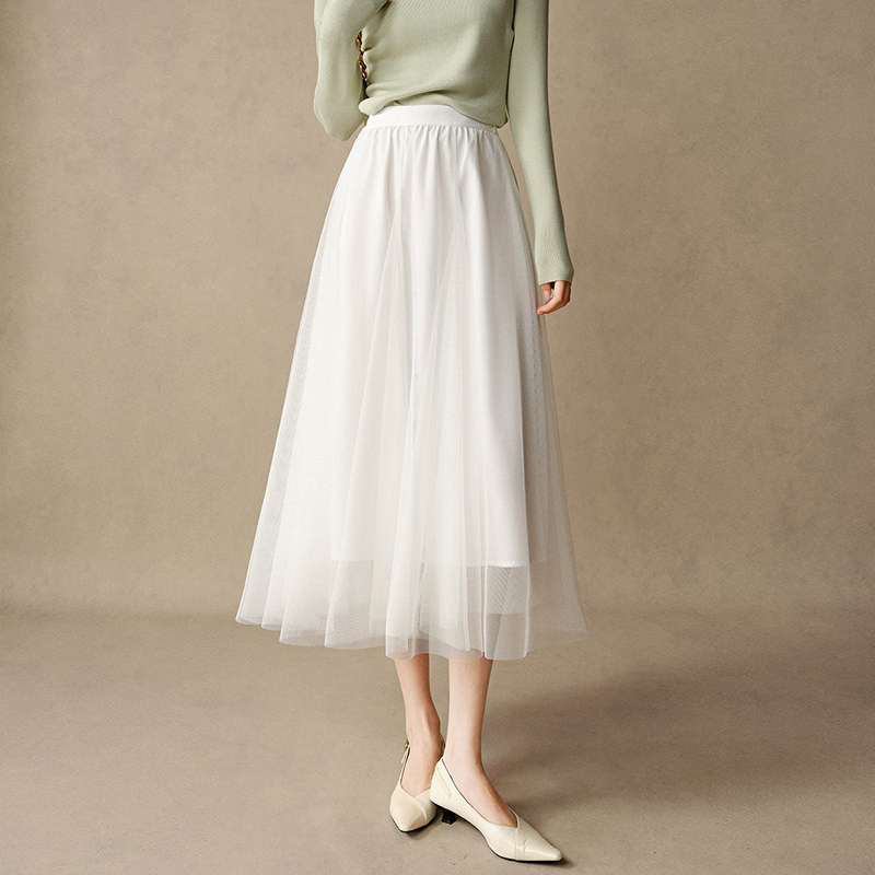 晚白2026年春新款优雅气质长裙简约百搭休闲减龄轻盈网纱半身裙