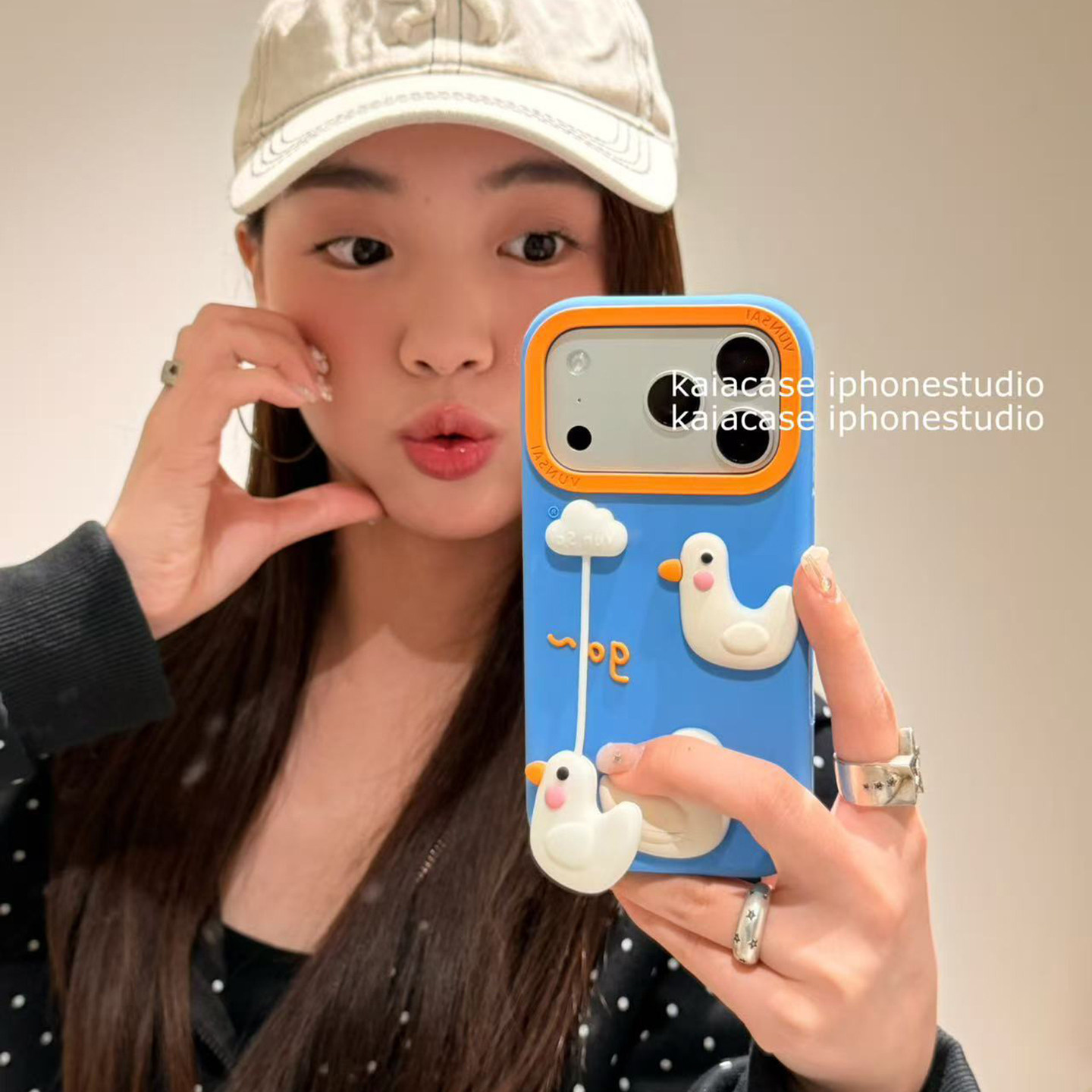 kaia 搞怪卡通云朵小鸭子挂坠适用苹果17promax手机壳iphone16pro新款15女14pro创意13pro硅胶磨砂防摔手机套