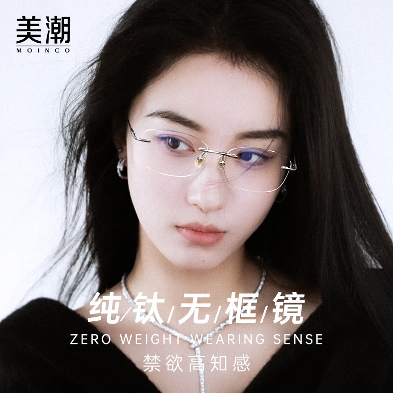 许我耀眼赵露思同款眼镜女许妍无框超轻纯钛仅6g近视可配蔡司镜片