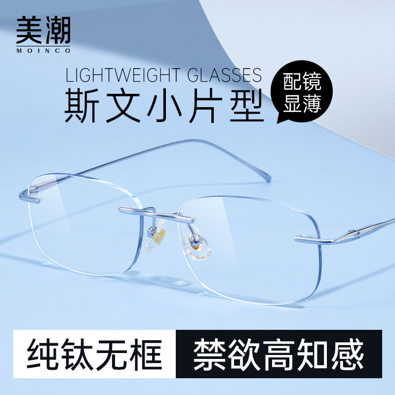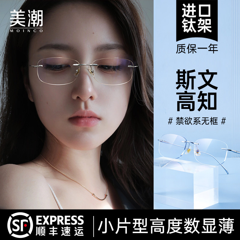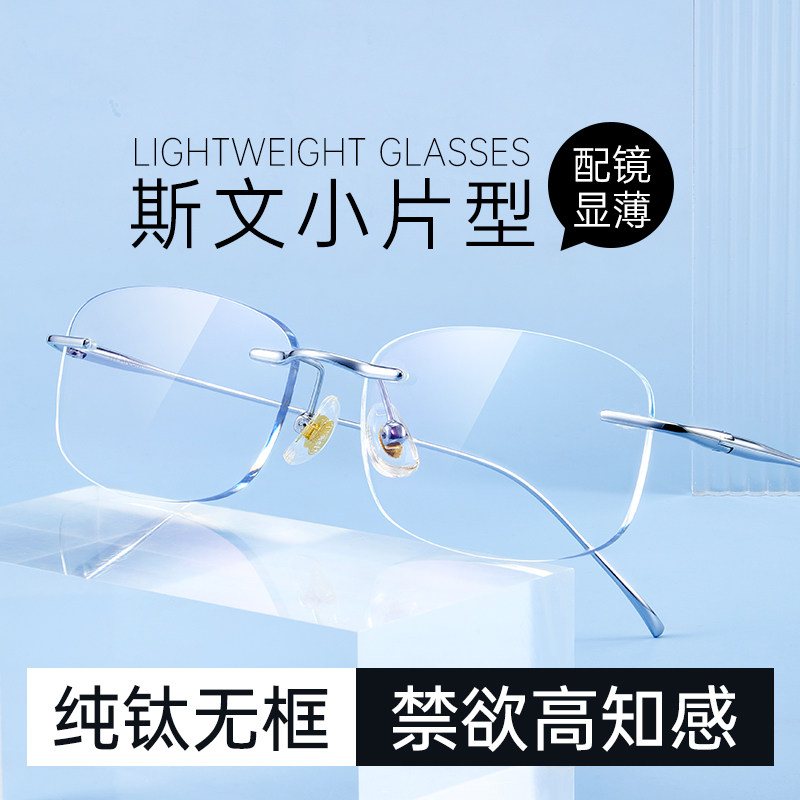 超轻纯钛近视眼镜女 无边框可配度数
