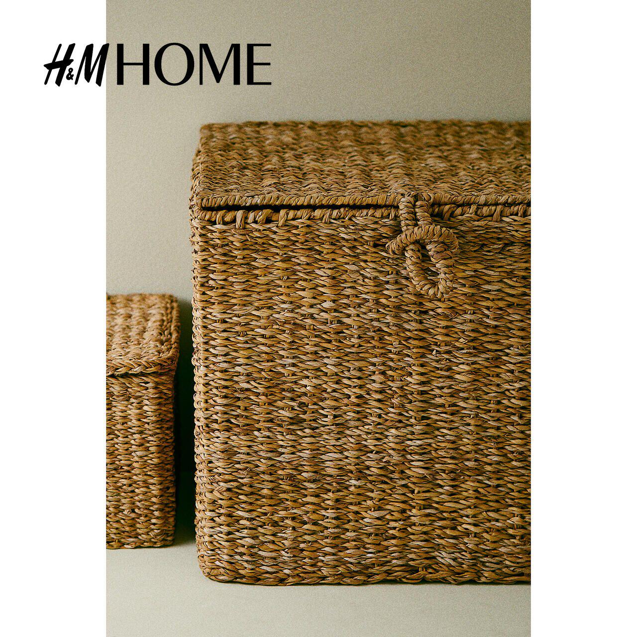 HM HOME简约整洁带盖海草编织收纳篮1199494