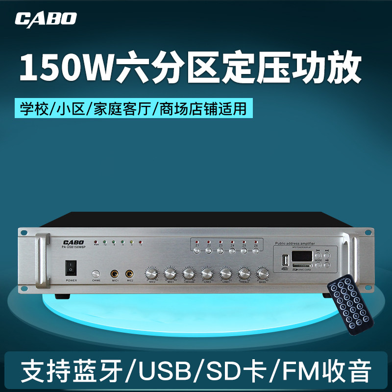 150W定压功放 USB/SD遥控器功能背景音乐功放 六分区公共广播功放