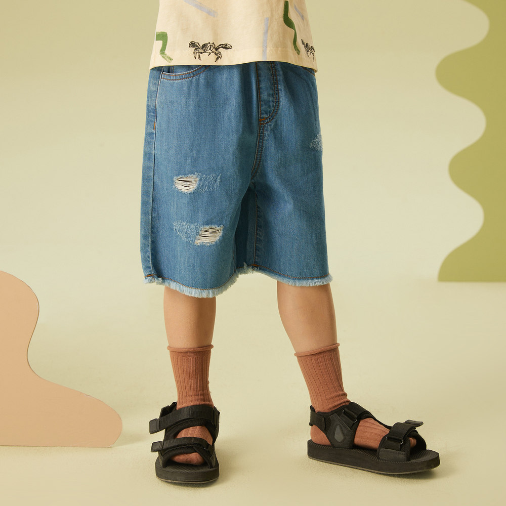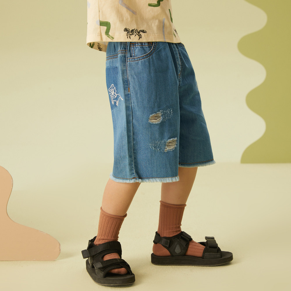 【设计师原创】moomoo童装男童直筒水洗牛仔裤夏新款凉