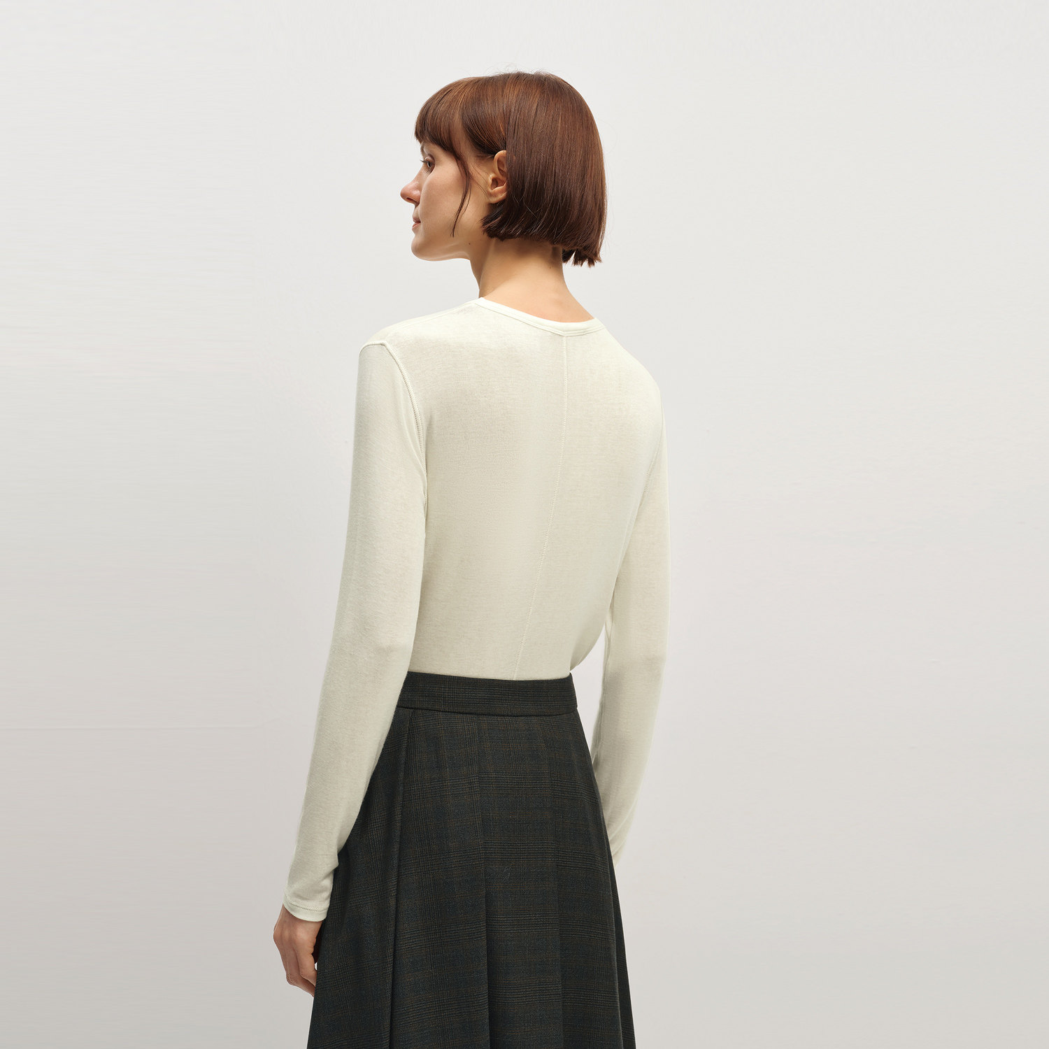 OVV2025秋冬新款女装天丝羊毛简约圆领基础打底长袖T恤