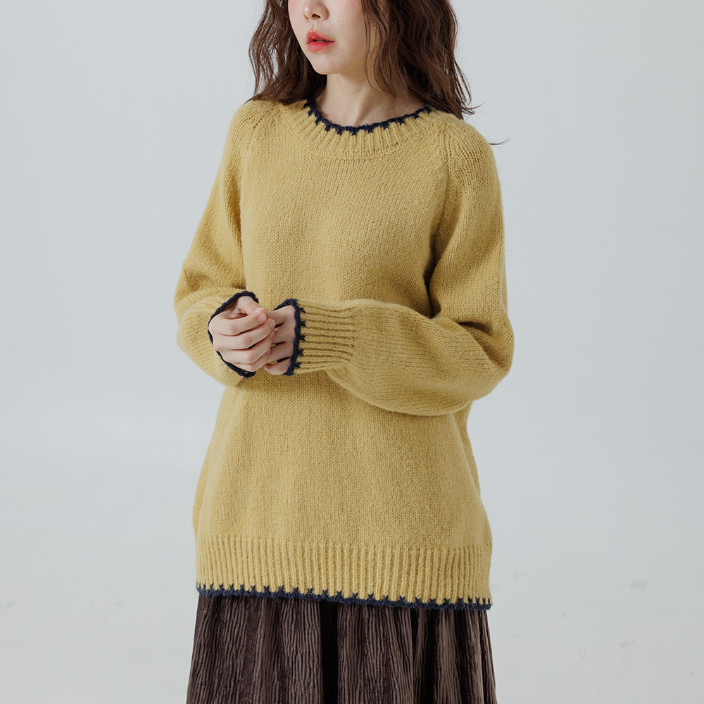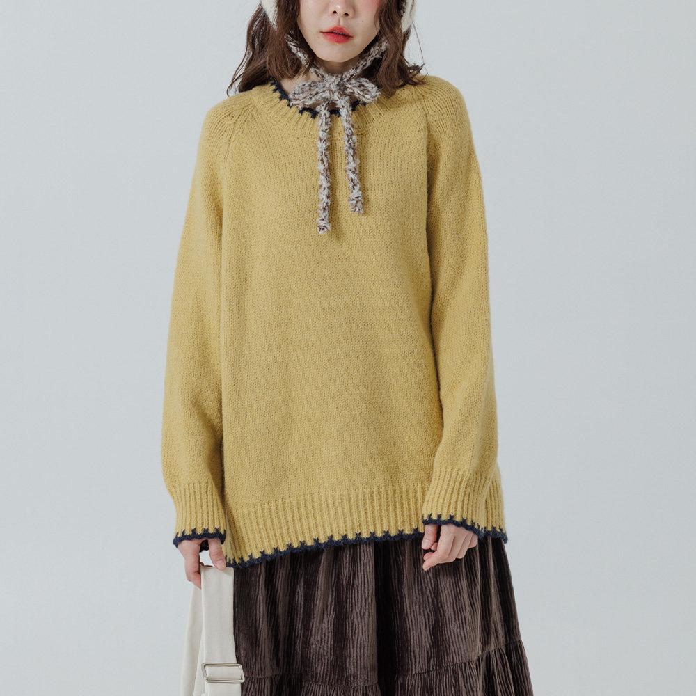 QUEENSHOP 2025秋冬新品女装配色花边设计针织长袖毛衣01071236