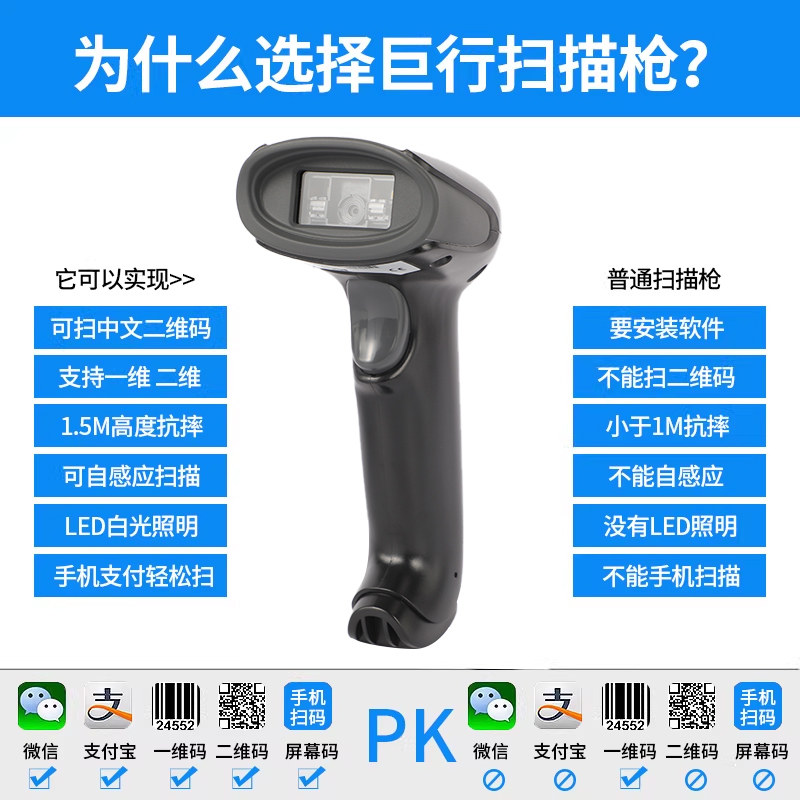 巨行有线二维码扫描枪手机支付超市收银快递扫码枪条码扫描器农资二维码扫描器农药兽药追溯码扫描枪