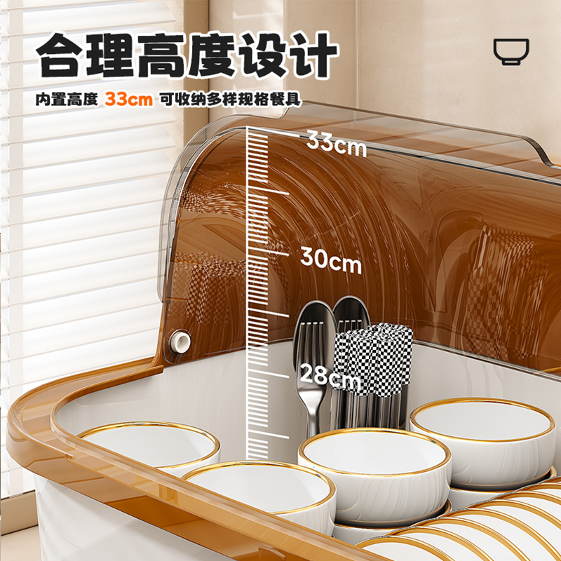 厨房双层透气碗筷收纳盒沥水碗架带盖装碗碟盘置物架大容量餐具柜