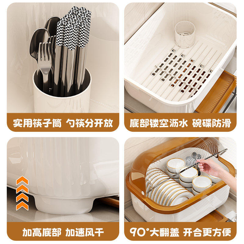 碗筷收纳盒餐具放碗碟收纳架厨房装家用防尘置物架沥水碗碗盘筷子
