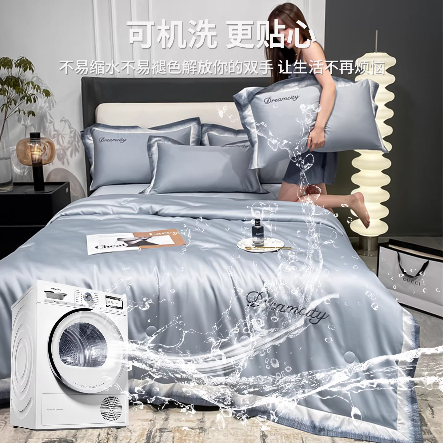 无印良品大豆纤维夏凉被四件套夏被可机水洗纯棉全棉空调被薄被子