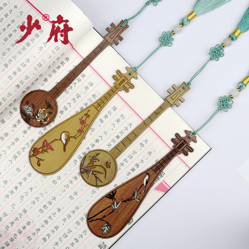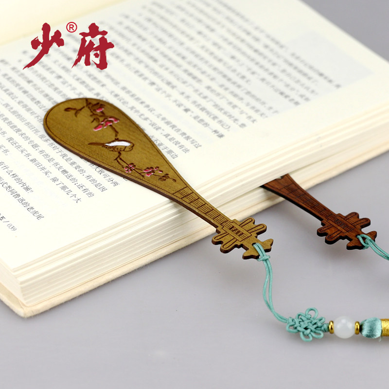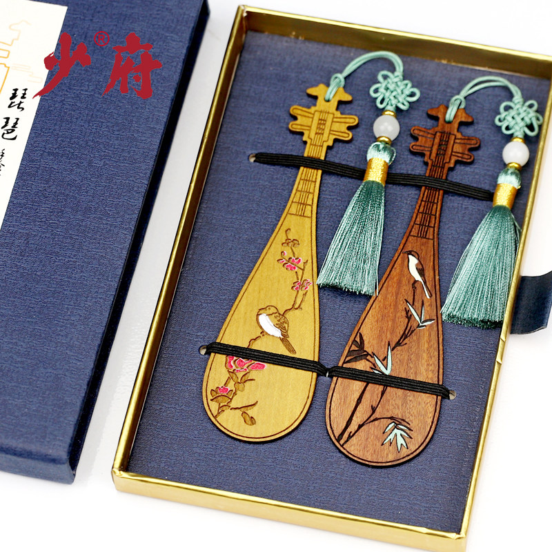 红木质古典中国古风创意黑檀香木制乐器书签高颜值套装公司商务定制logo故宫纪念品教师节礼物送老师文创礼品