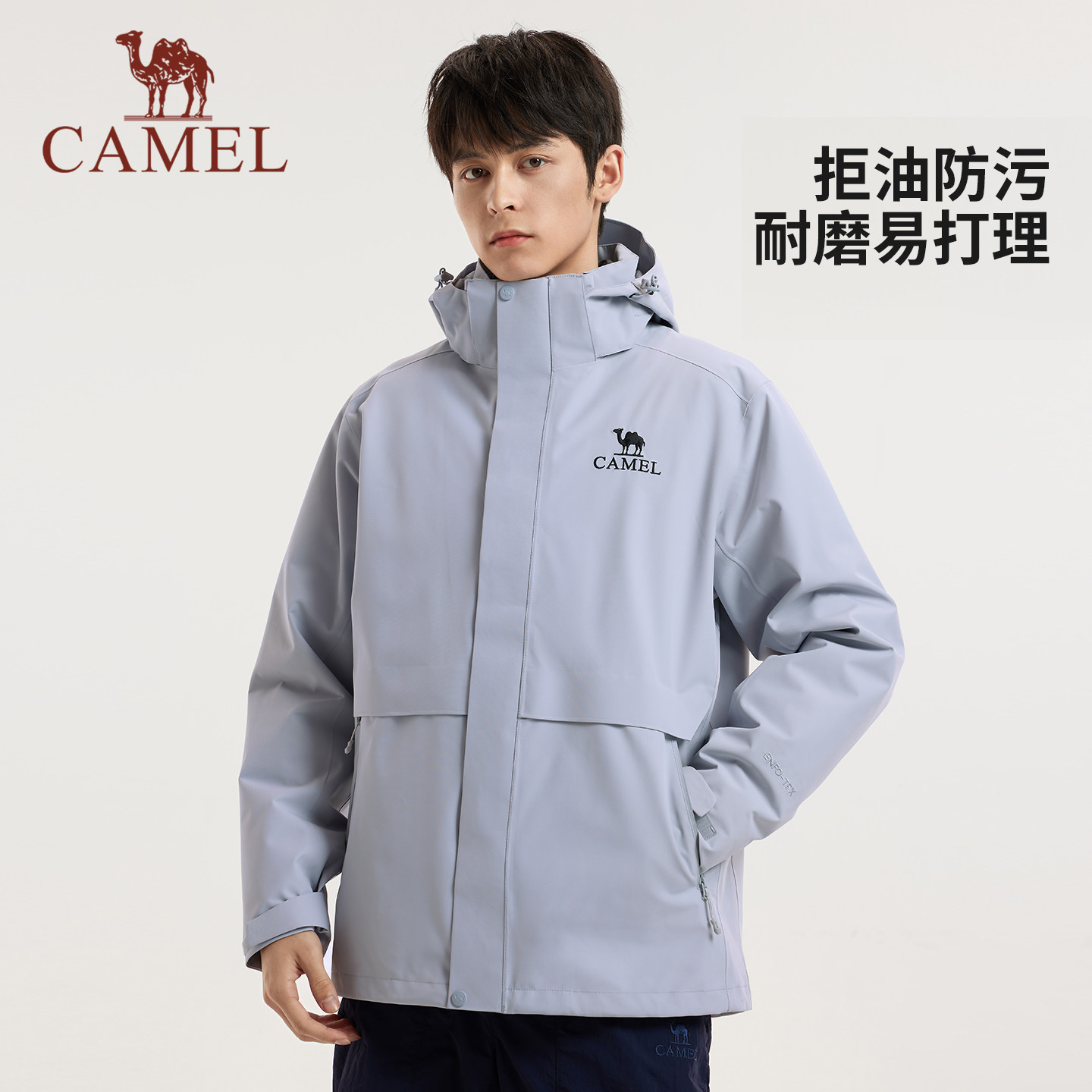 骆驼男装夹克春秋保暖三合一户外三防冲锋衣外套内胆防水徒步登山