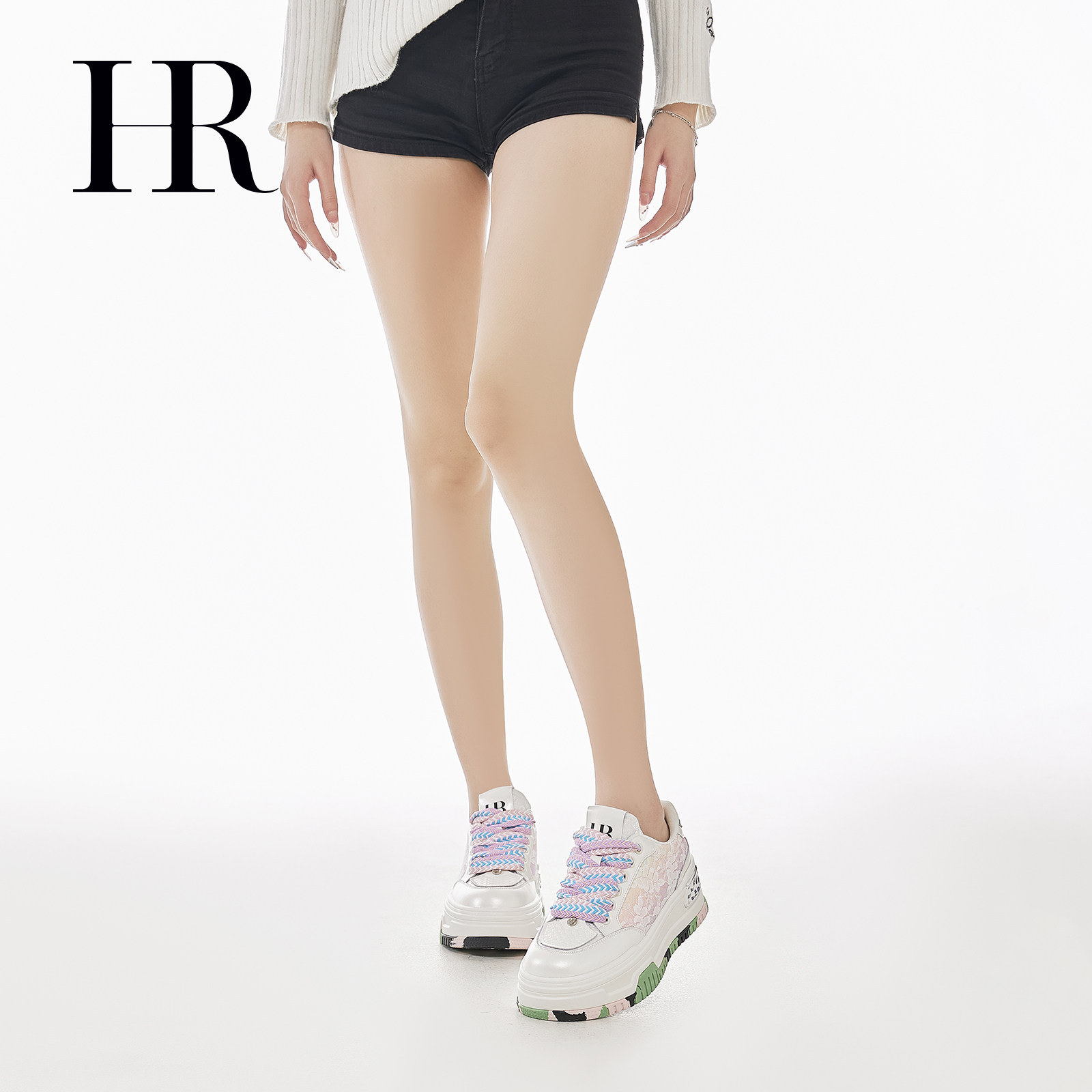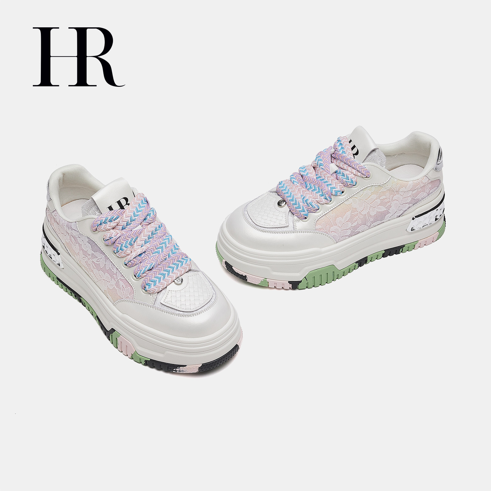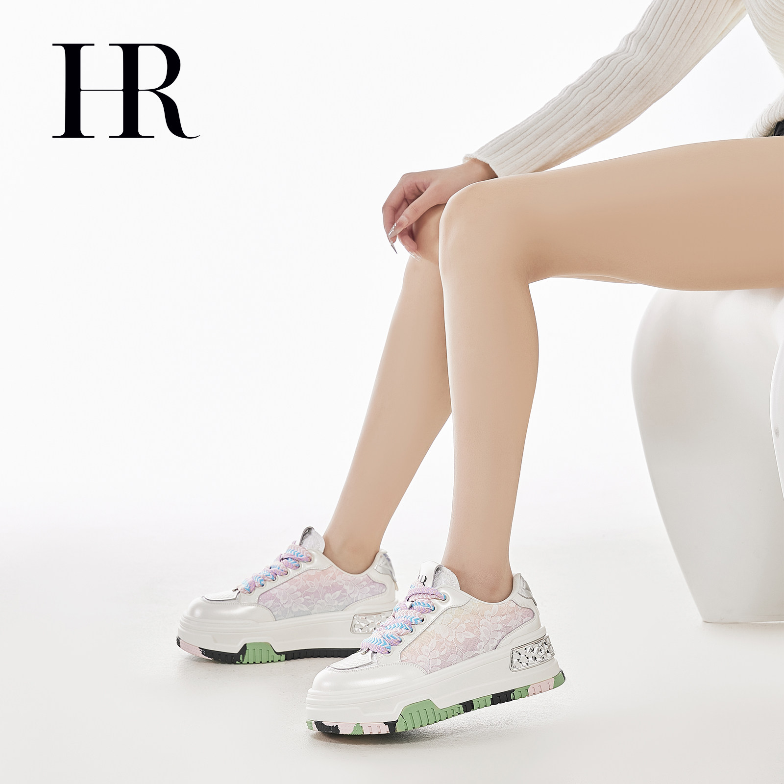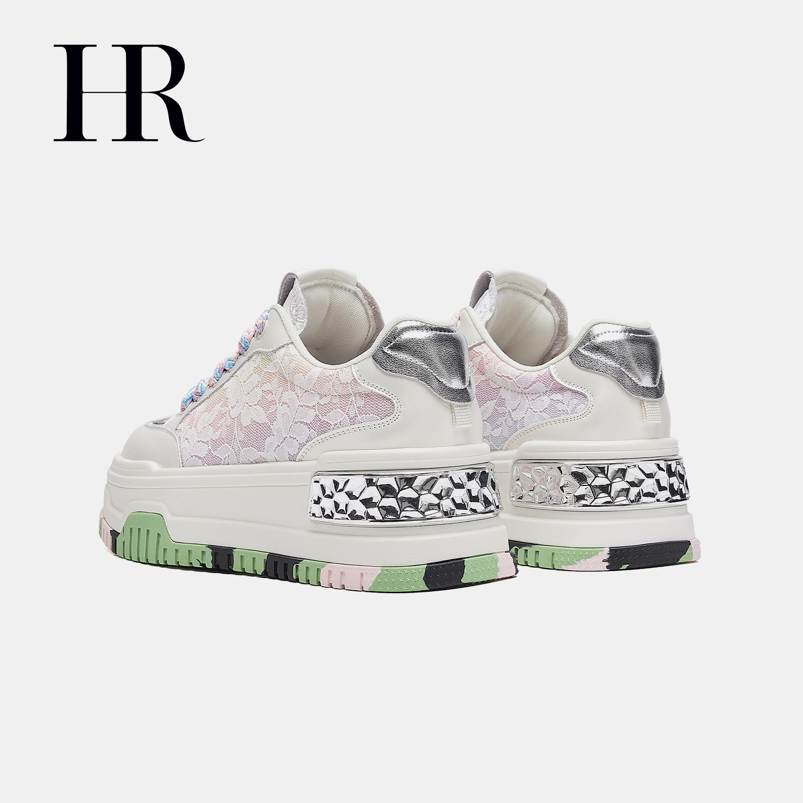 HR赫莲娜休闲板鞋2026春季新款女鞋子厚底刺绣网纱迷彩运动小白鞋