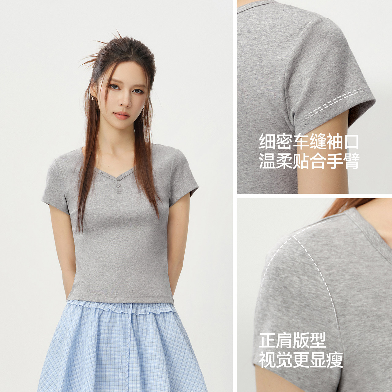 多色可选任你搭配 半开襟V领自由调节露肤度