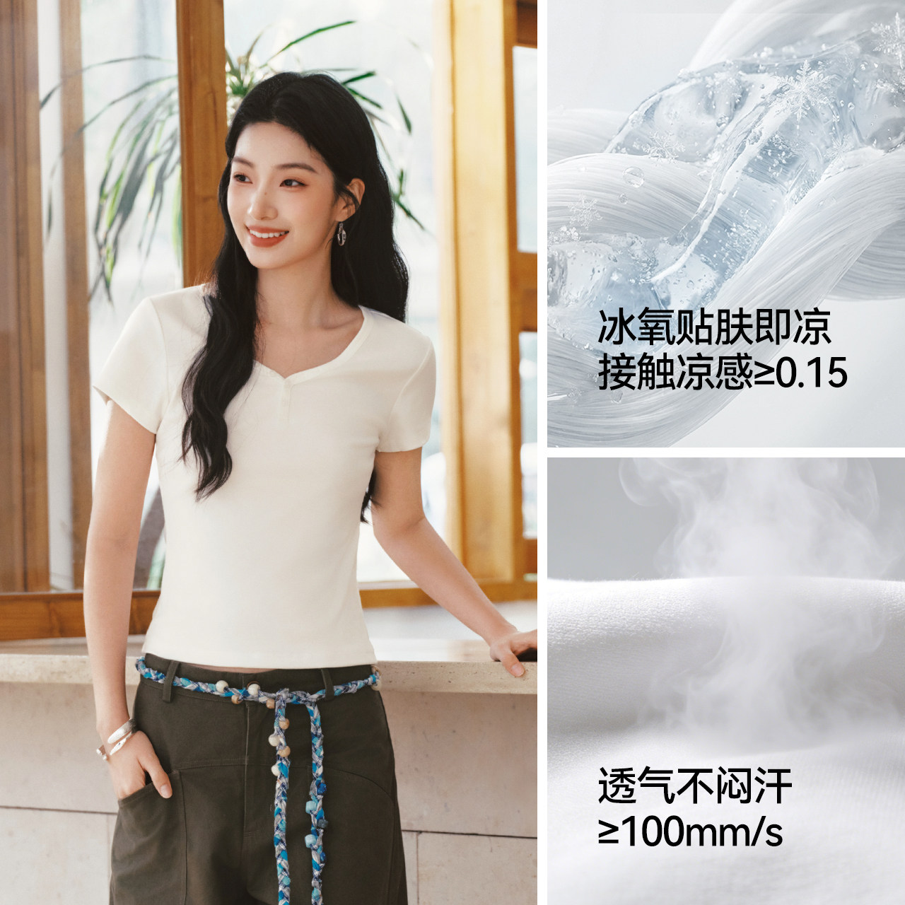 陈都灵丨凉感T森马短袖T恤女修身纯色基础夏季新款圆领白色女装