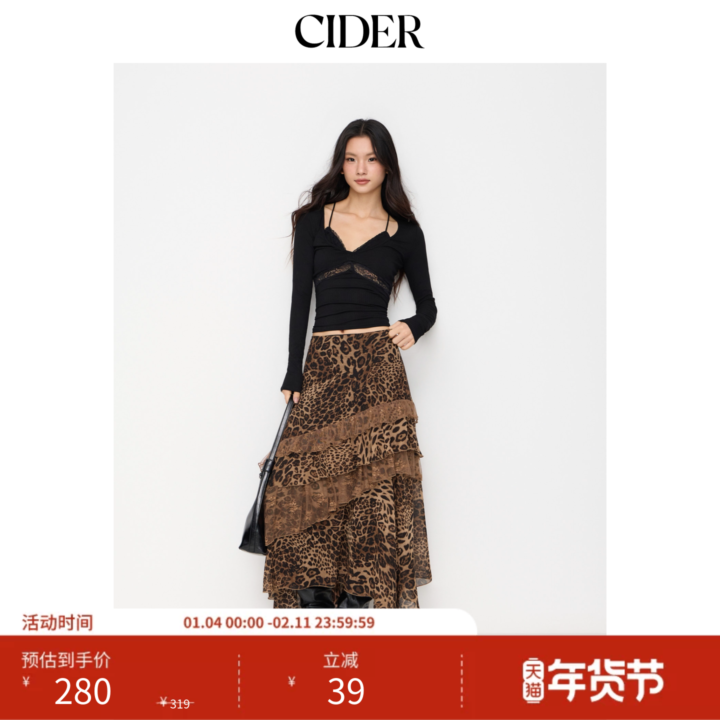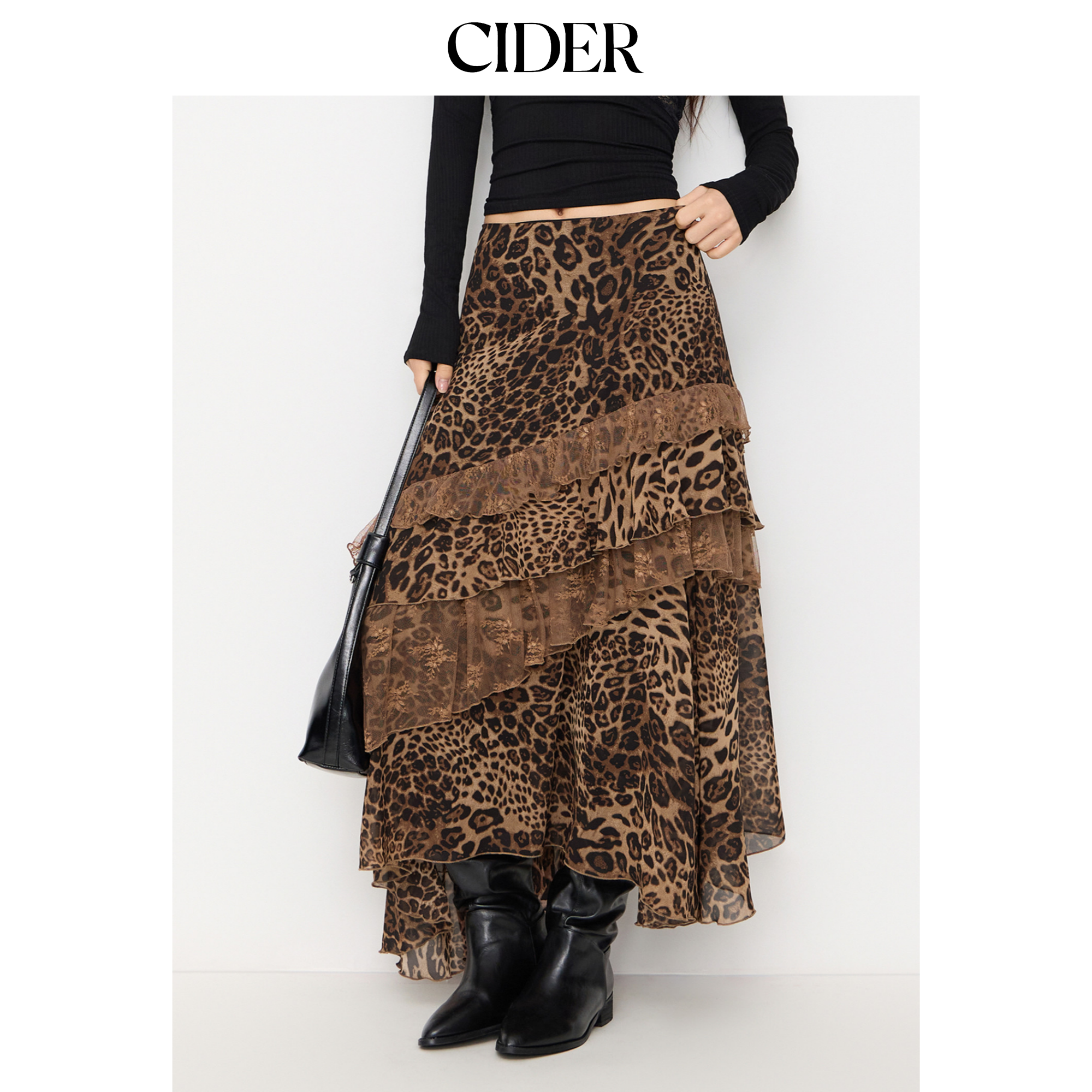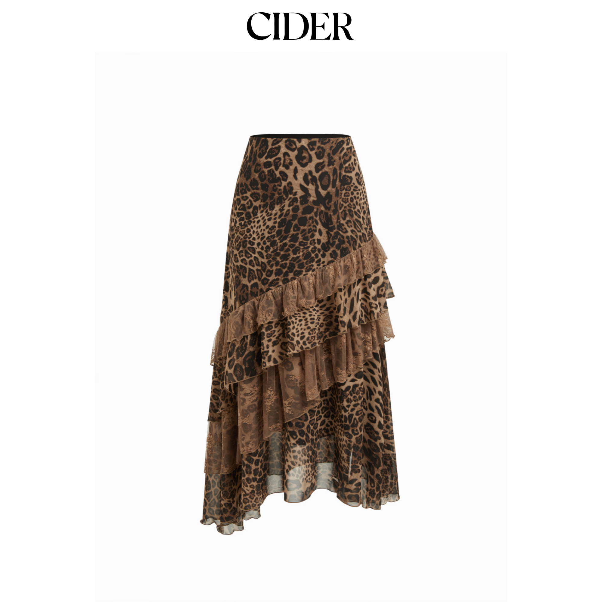 CIDER都市游牧风美式长裙女装豹纹中低腰不规则半身裙114965686