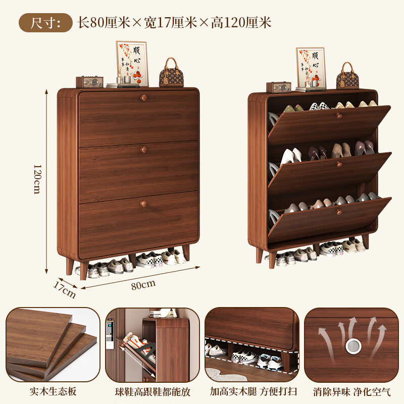 实木鞋柜家用门口2026新款防尘收纳柜靠墙一体玄关窄边储物柜鞋架