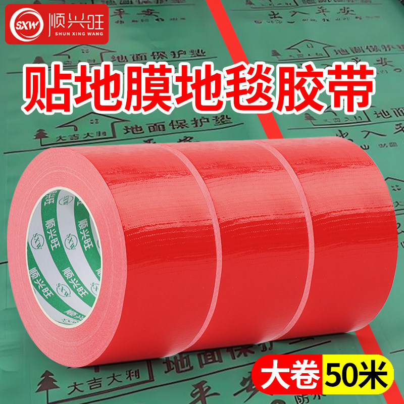 单面布基胶带50米高粘度耐磨红绿银黑白彩色贴地膜装修遮蔽强力固定展会舞台红地毯专用地板保护无痕粘贴胶布