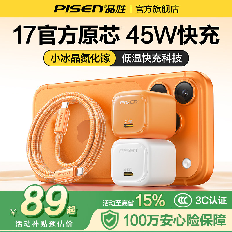 【45W冰晶】适用苹果17充电器氮化镓头iPhone16promax充电器线15充电头新款40W手机数据线Air快充头套装14插