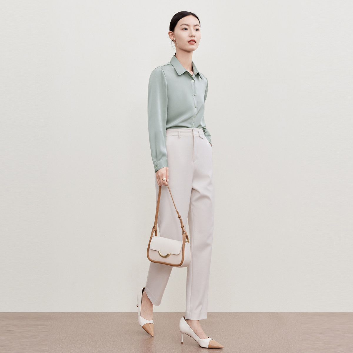 菲妮迪品牌衬衫秋季新款简约时尚通勤纯色百