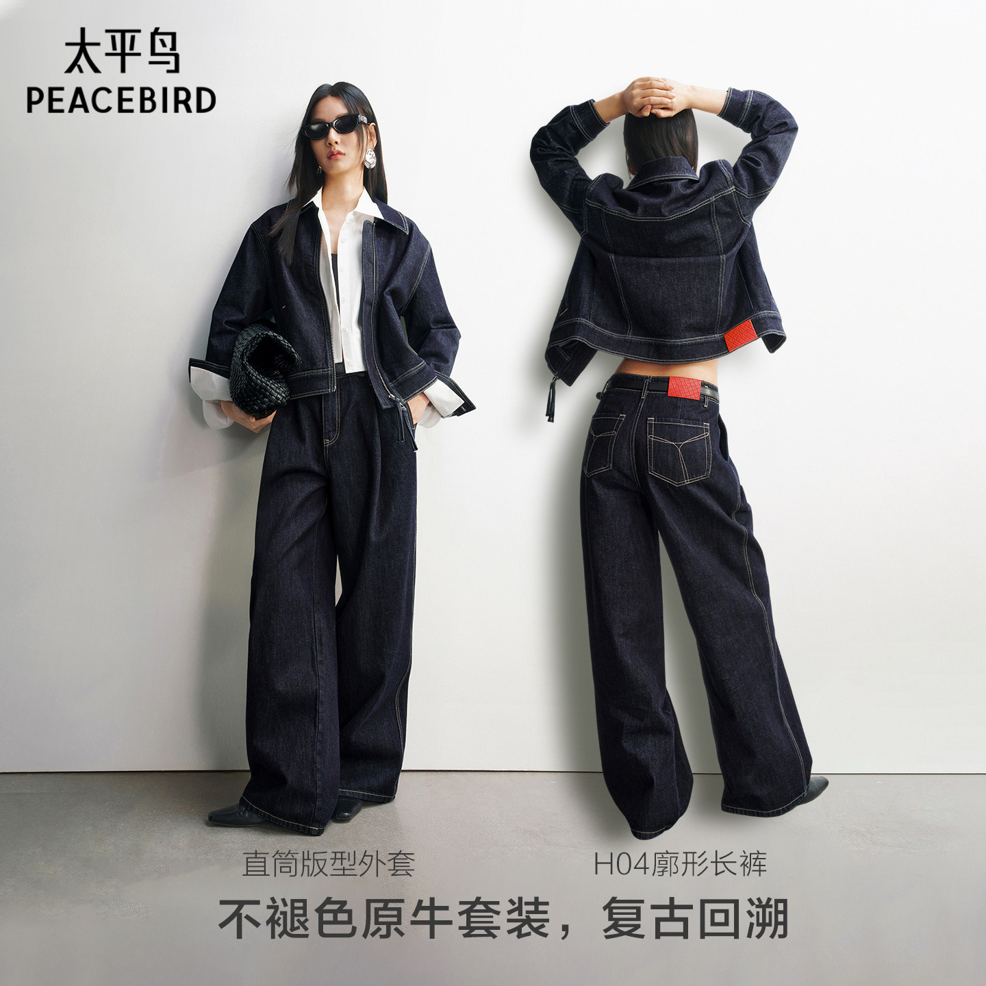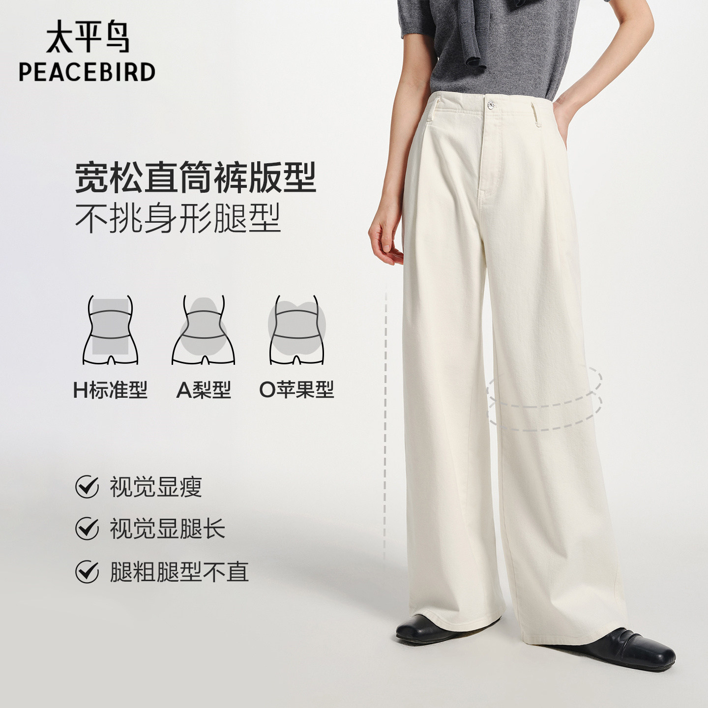 【商场同款】太平鸟26新款原牛套装阔腿直筒白色牛仔裤A1HAG1246