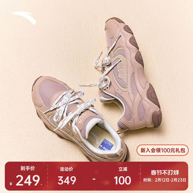 安踏小熊鞋丨薄底休闲鞋女子春季潮流百搭薄底老爹鞋软底舞蹈鞋子