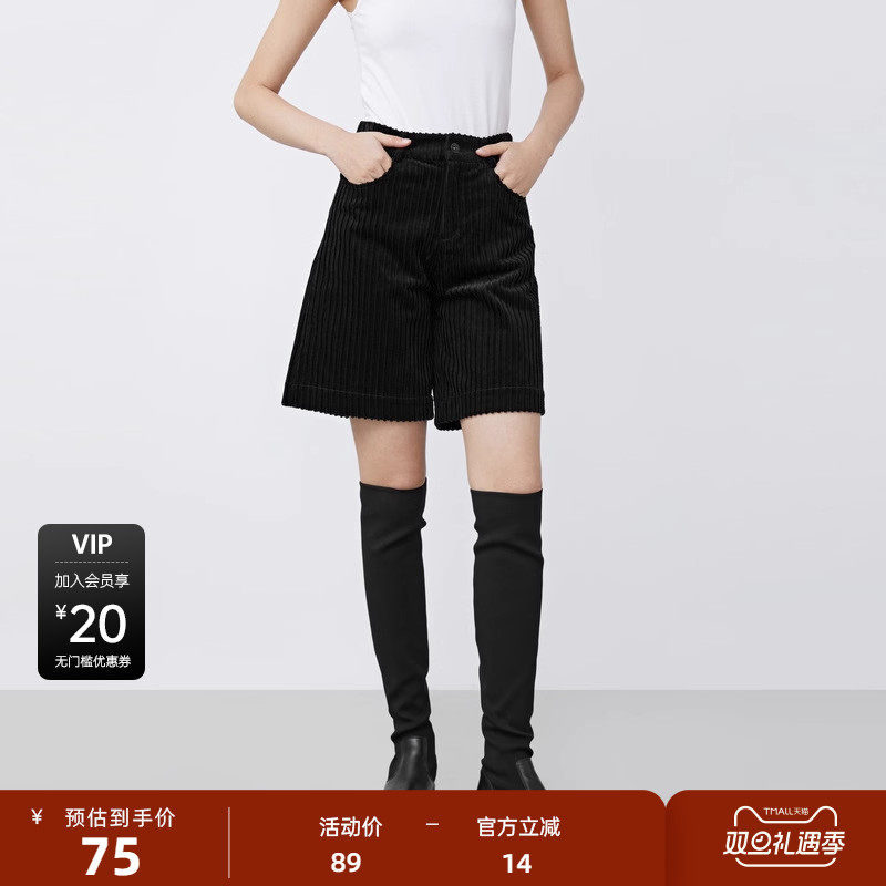 S·DEER圣迪奥明星同款女装冬季新款宽松阔腿灯芯绒短裤S21480902