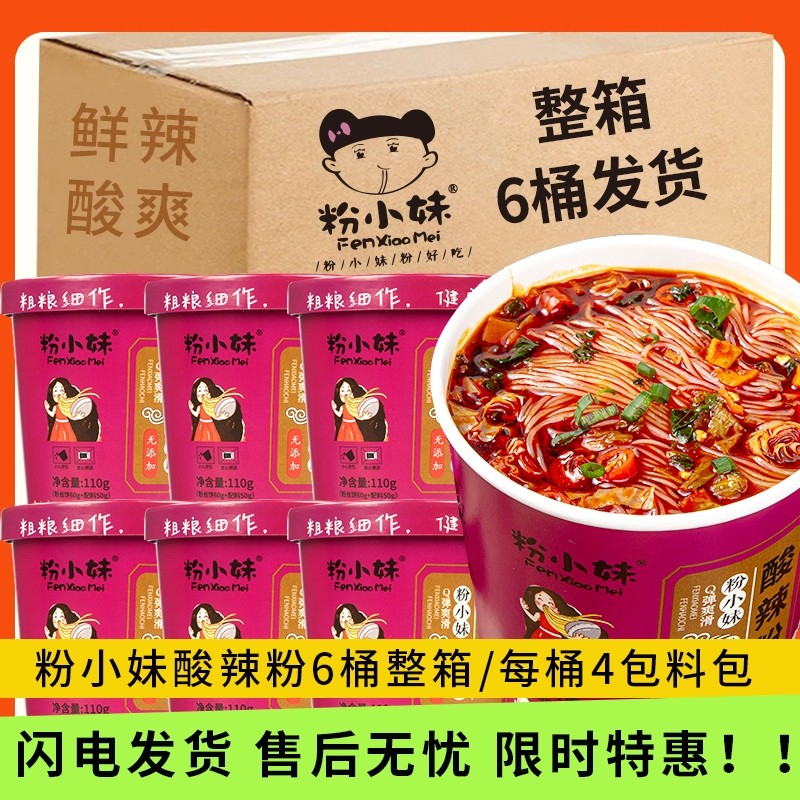 粉小妹酸辣粉桶装麻辣整箱装办公方便速食粉丝夜宵冲泡美食经典