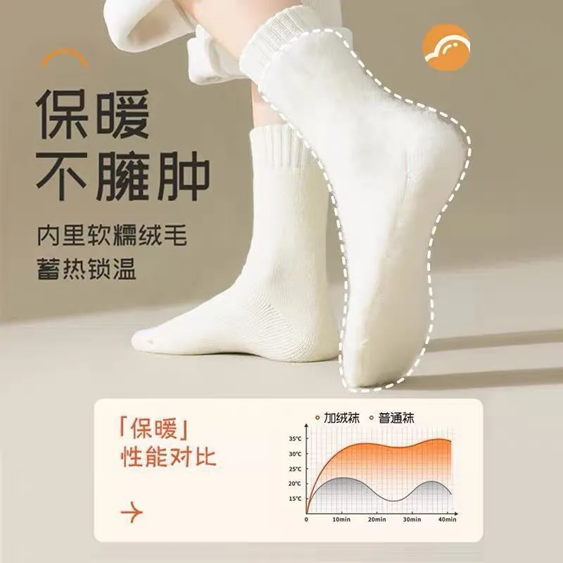 毛绒袜子女秋冬季加绒加厚拉绒居家睡眠地板月子中筒保暖毛毛长袜