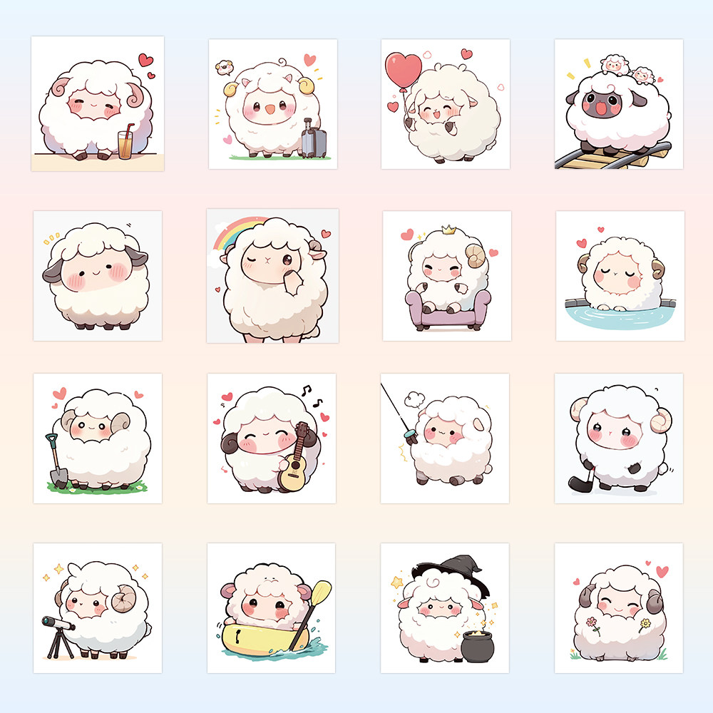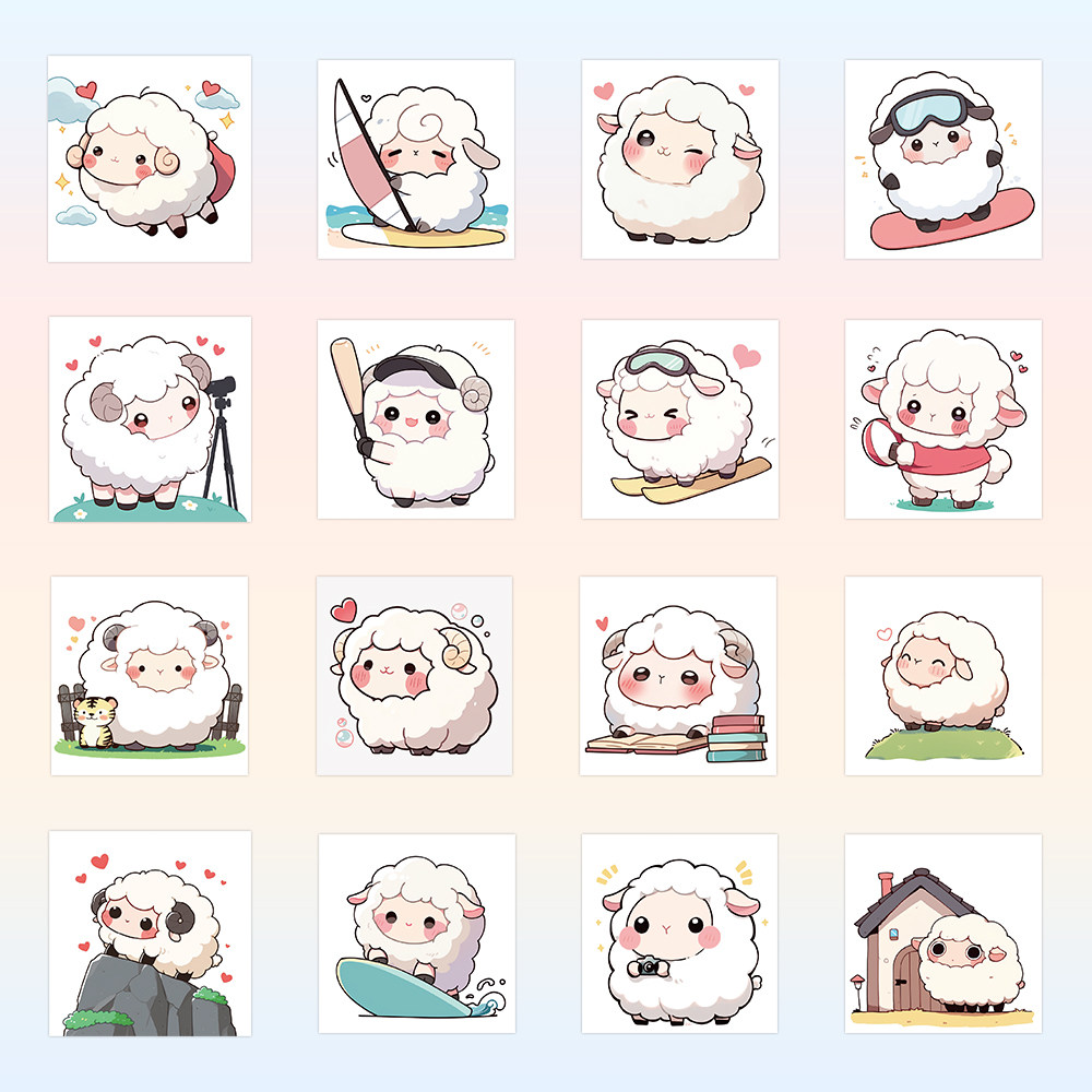 400张可爱小动物日常贴纸卡通小绵羊装饰行李箱笔记本DIY防水贴画