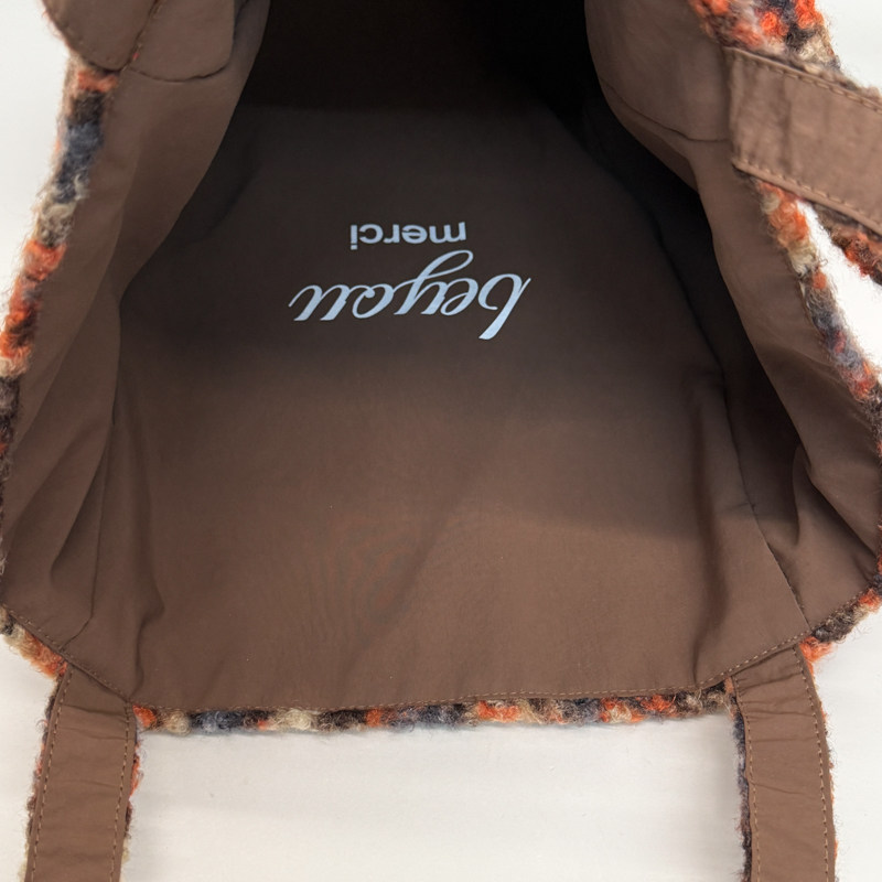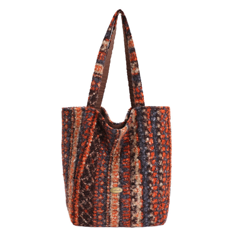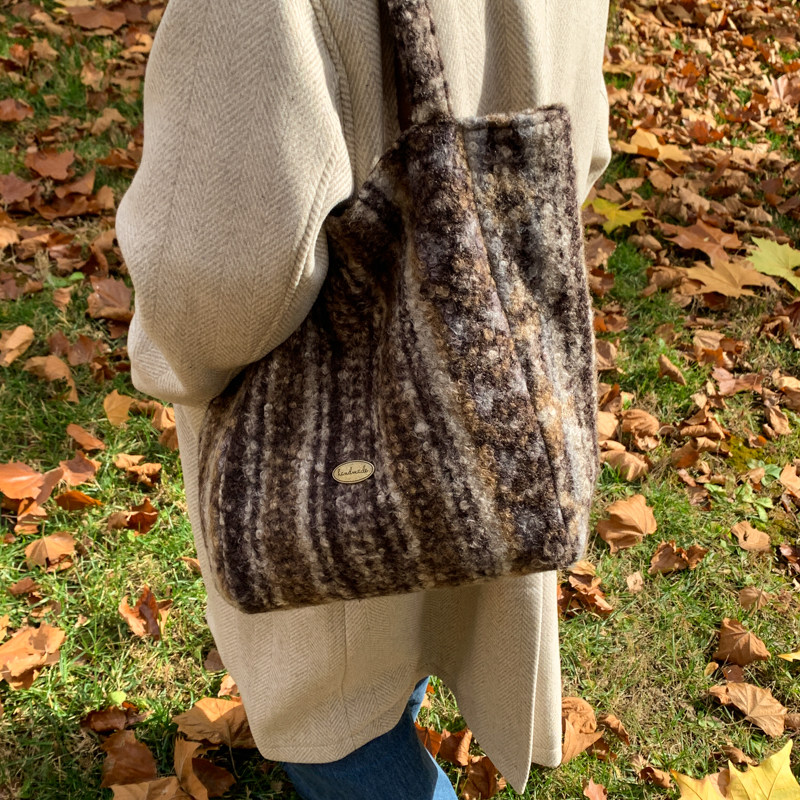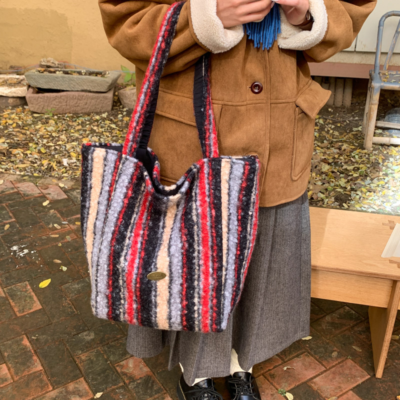 MOBAG&KUENA秋冬毛绒托特包竖条纹布袋格纹单肩包大容量双面背包