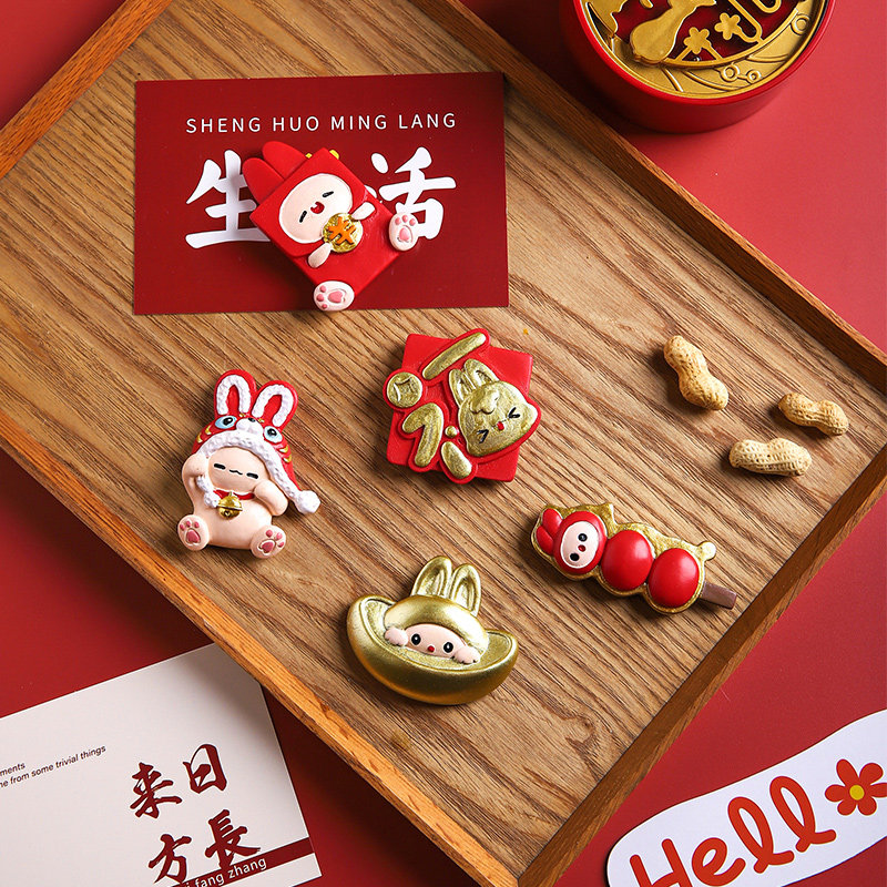 舍里冰箱贴可爱强力磁性贴个性创意装饰品喜庆中国风春节兔年磁铁