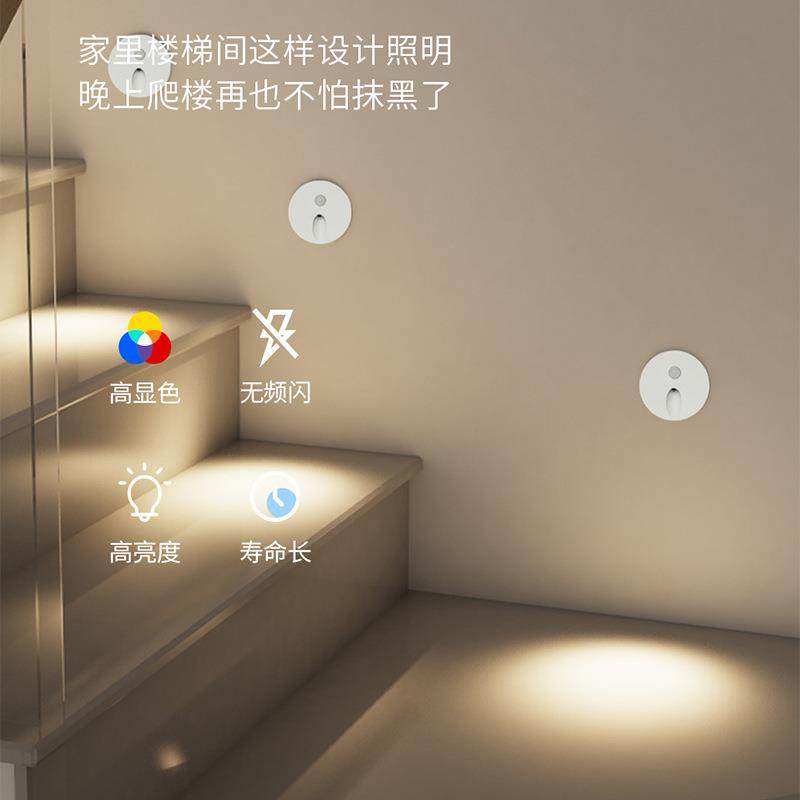 65圆 感应地脚灯人体感应过道小夜灯楼梯走廊踏步感应灯台阶灯