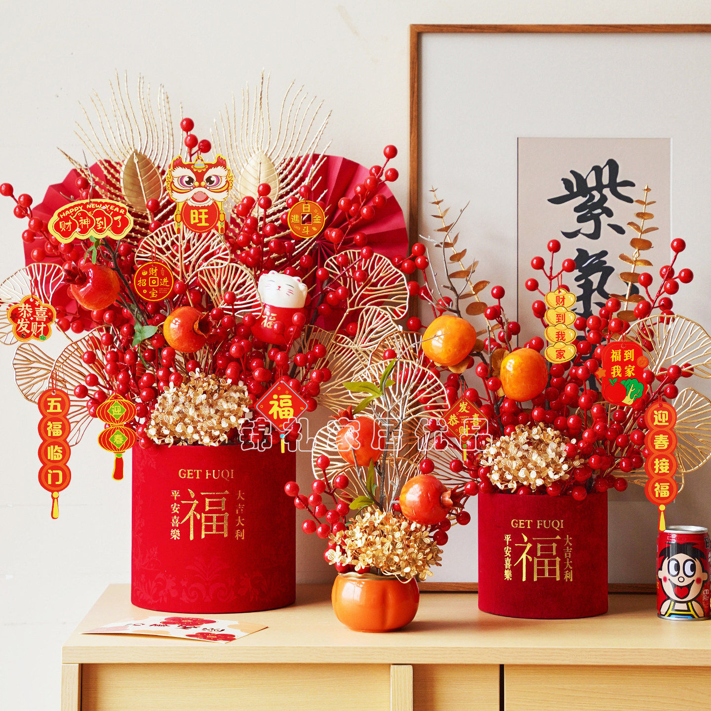 新年福桶diy材料包抱抱桶乔迁结婚花束摆件年宵花仿真花柿子客厅