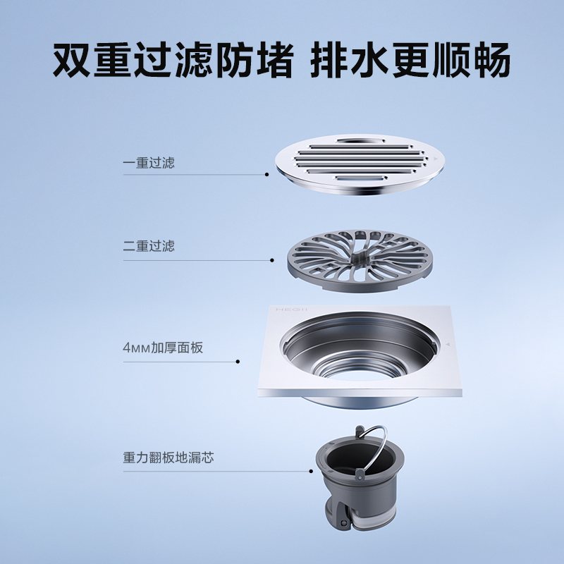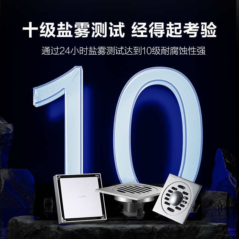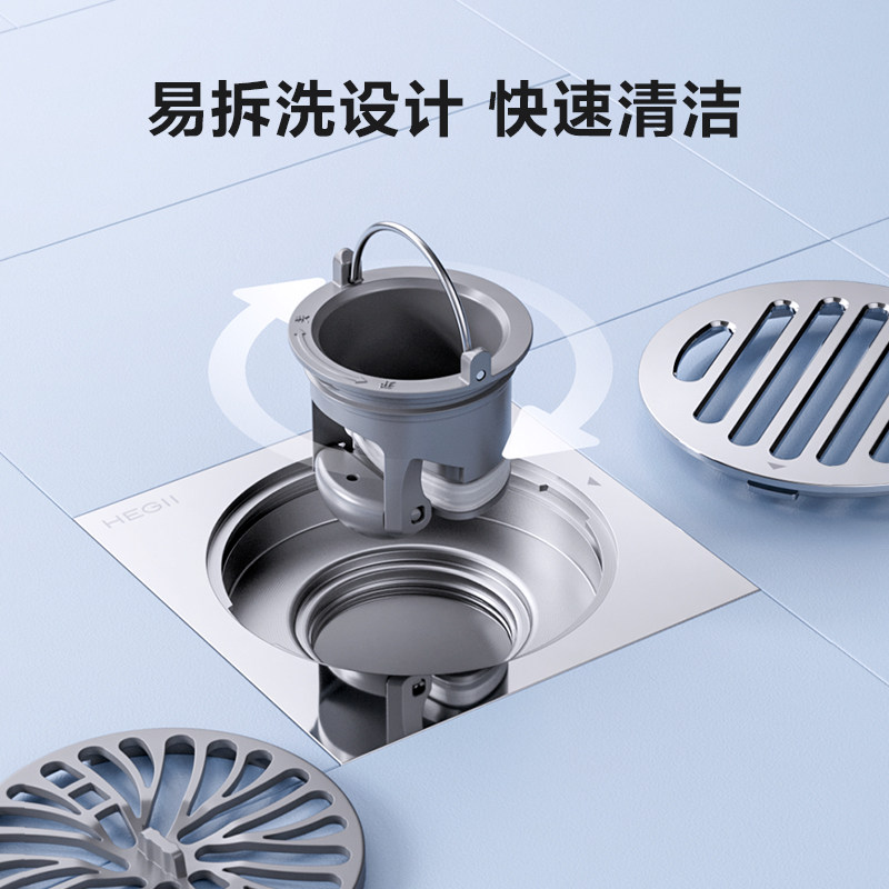 恒洁方形地漏隐形重力加厚不锈钢铜浴室洗衣机下水道防臭防堵防虫